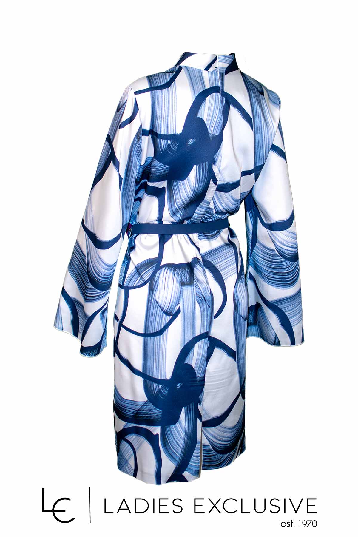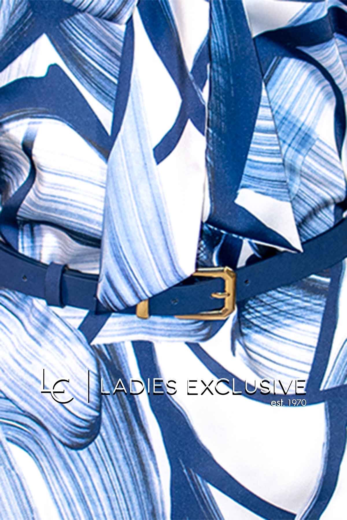 ESTEL Φόρεμα μπλε σατέν με άνοιγμα v και ιδιαίτερο δέσιμο. Διαθέτει ζώνη από δερματίνη.