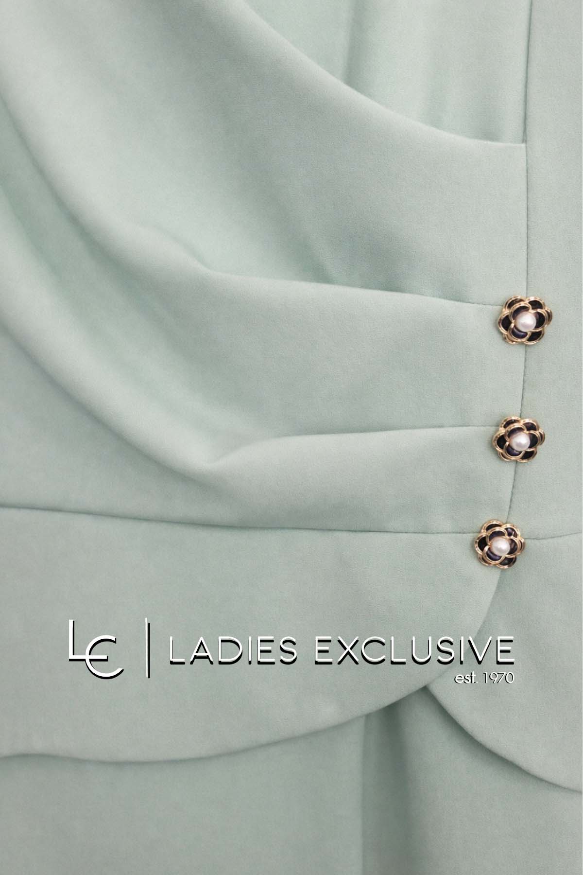 WEFTS Φόρεμα μέντα μίντι κοντομάνικο με μπάσκα στη μέση και διακοσμητικά κουμπιά πέρλες.