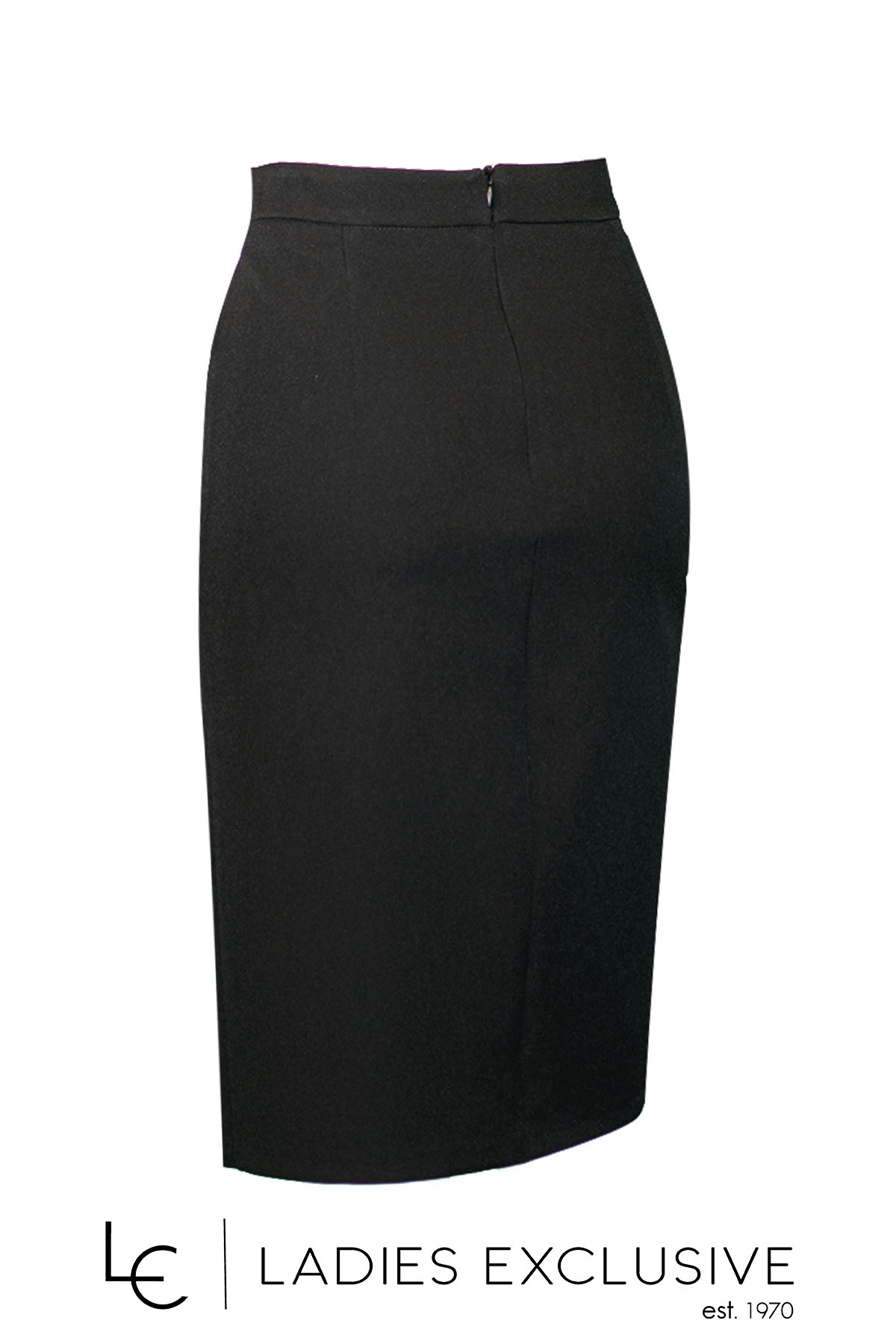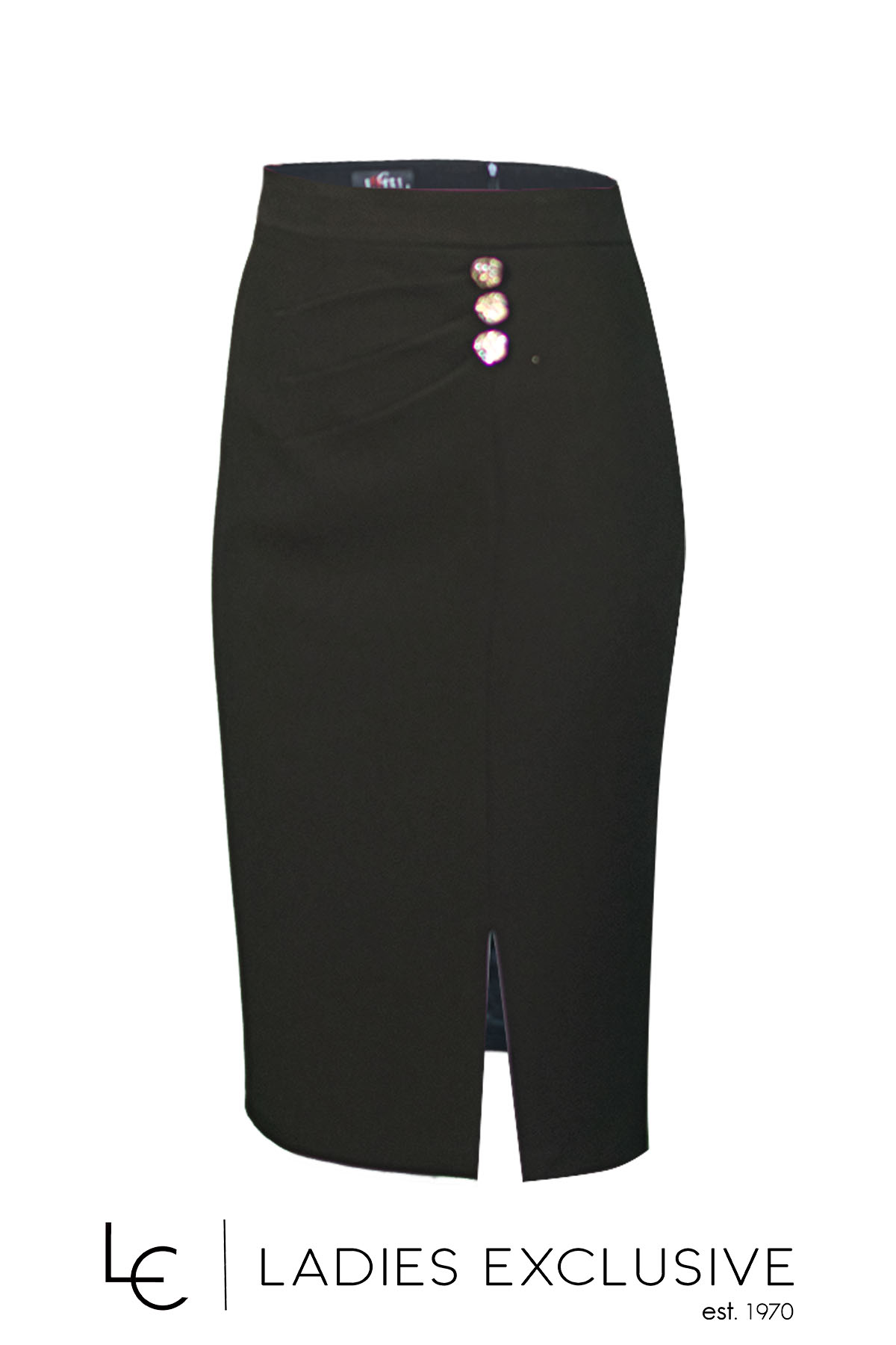 EFFECT Φούστα μαύρη κρεπ με σκίσιμο μπροστά και διακοσμητικά κουμπιά. Γίνεται σετ με το σακάκι με κωδικό 25-500-2729.01.