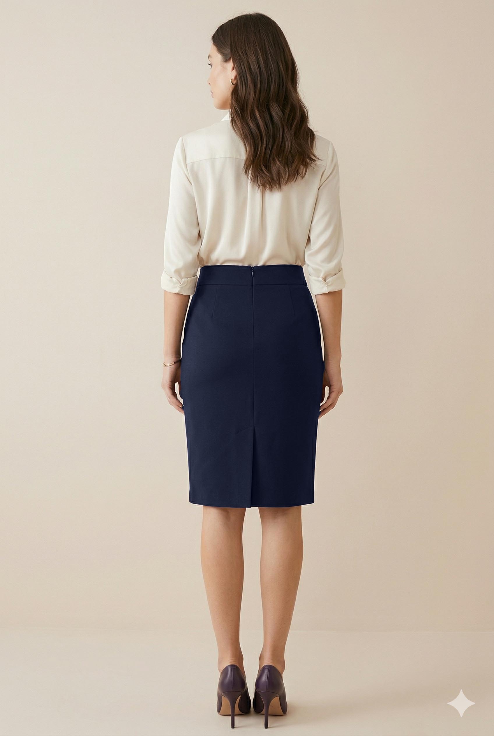 EFFECT Φούστα μπλε κρεπ σε ίσια γραμμή.