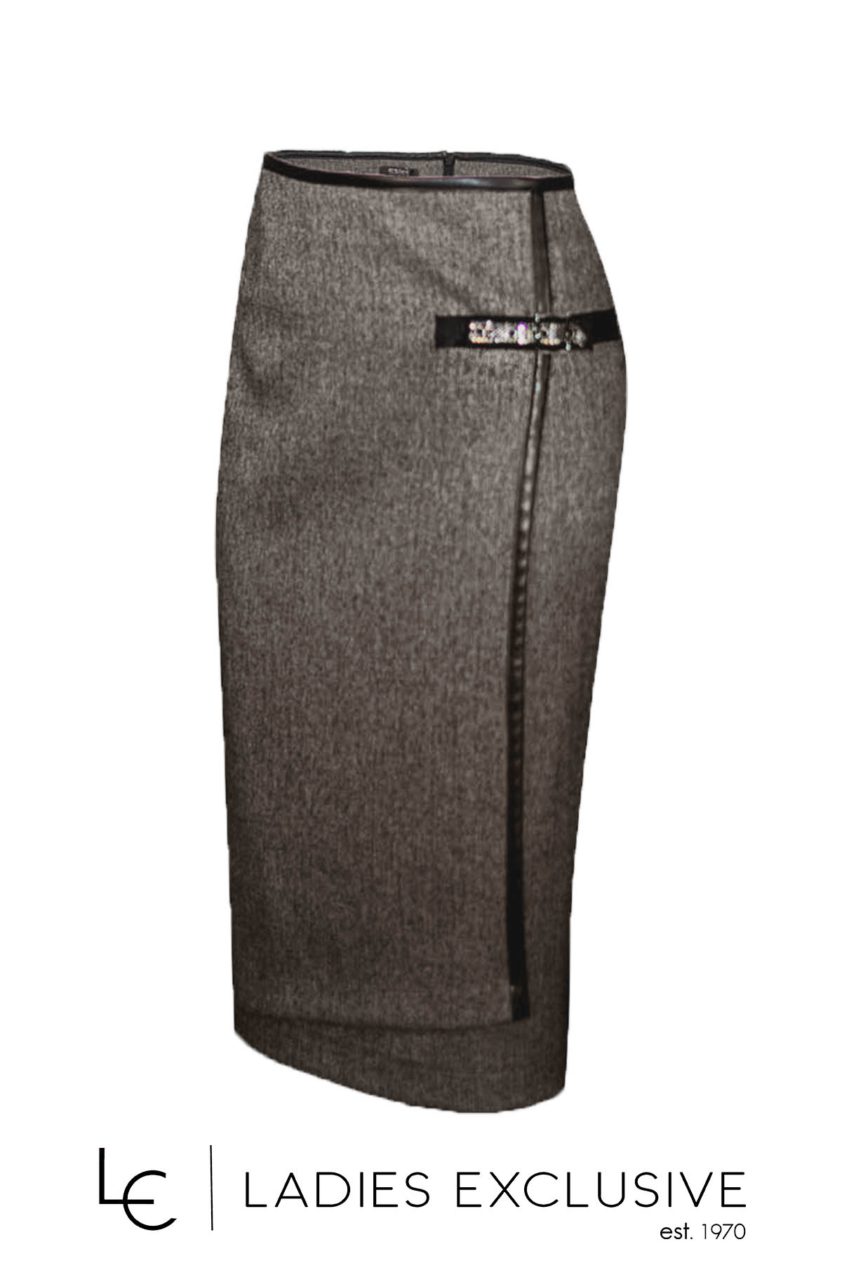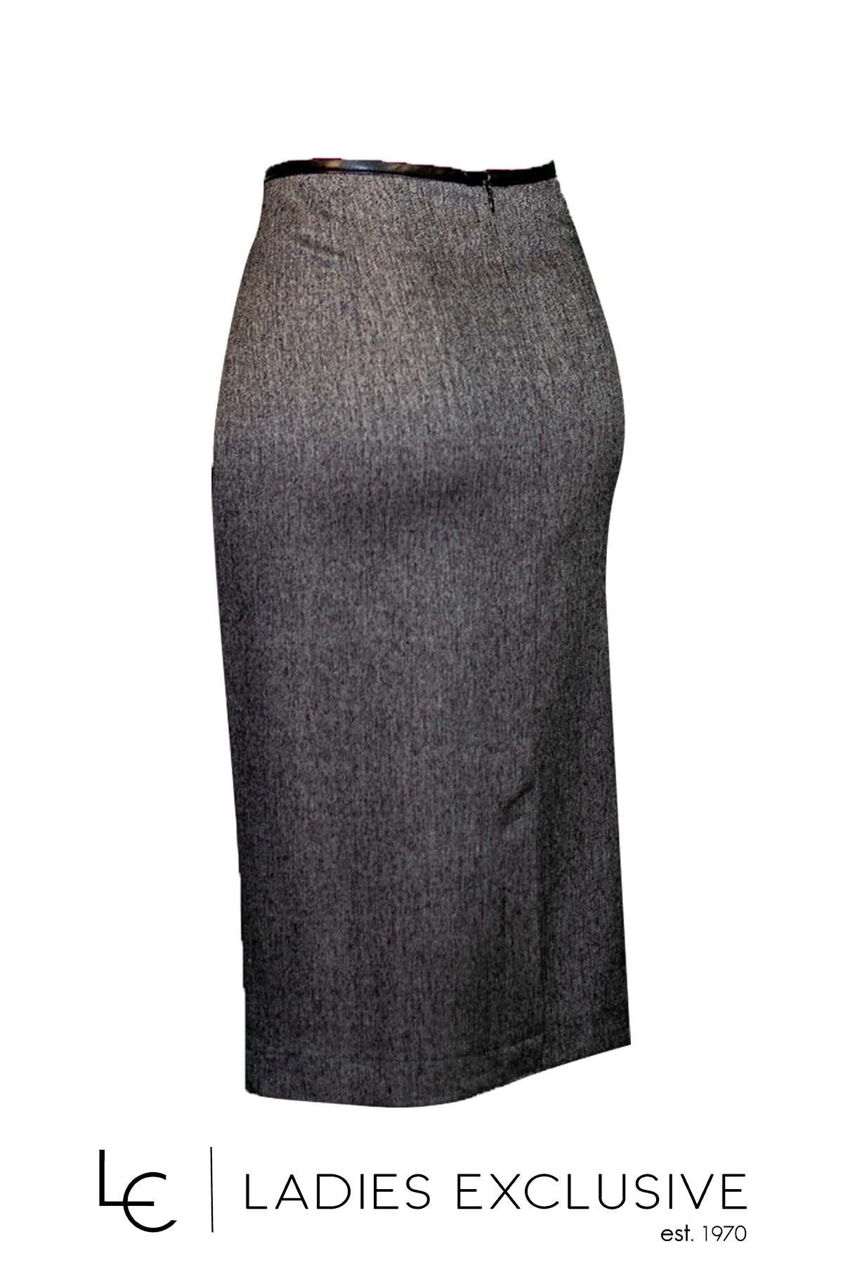 ESTEL Φούστα γκρι φάκελος με λεπτομέρειες δερματίνης στα τελειώματα και ιδιαίτερη αγκράφα.