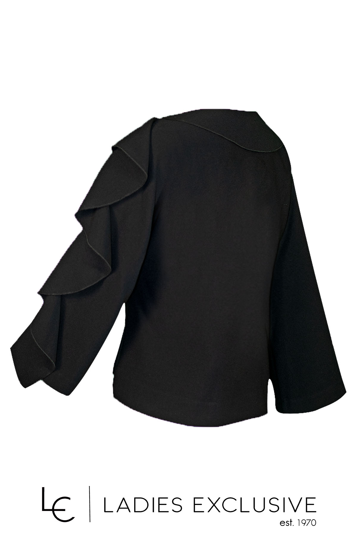 BELLA P. Μπλούζα μαύρη κρεπ με φαρδύ μανίκι και πρόσθετο βολάν.