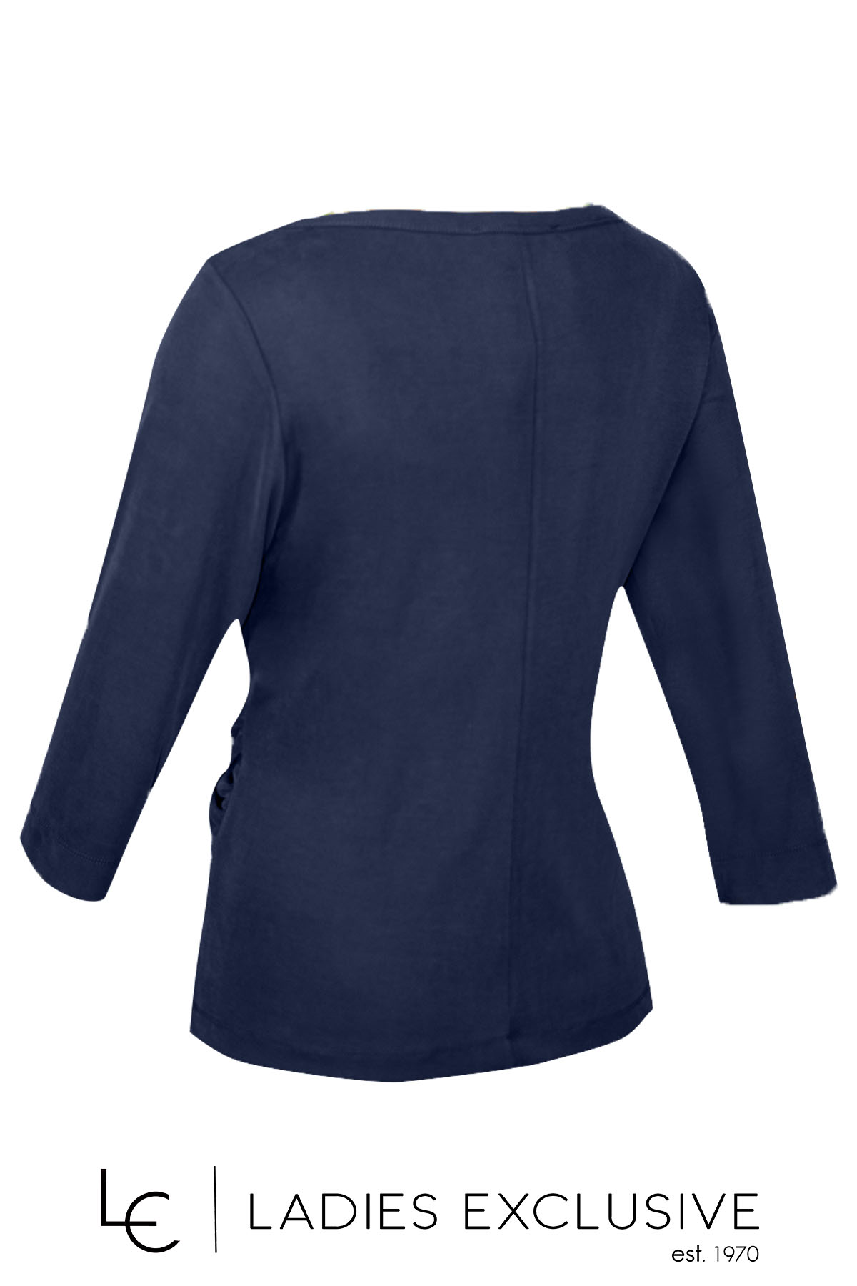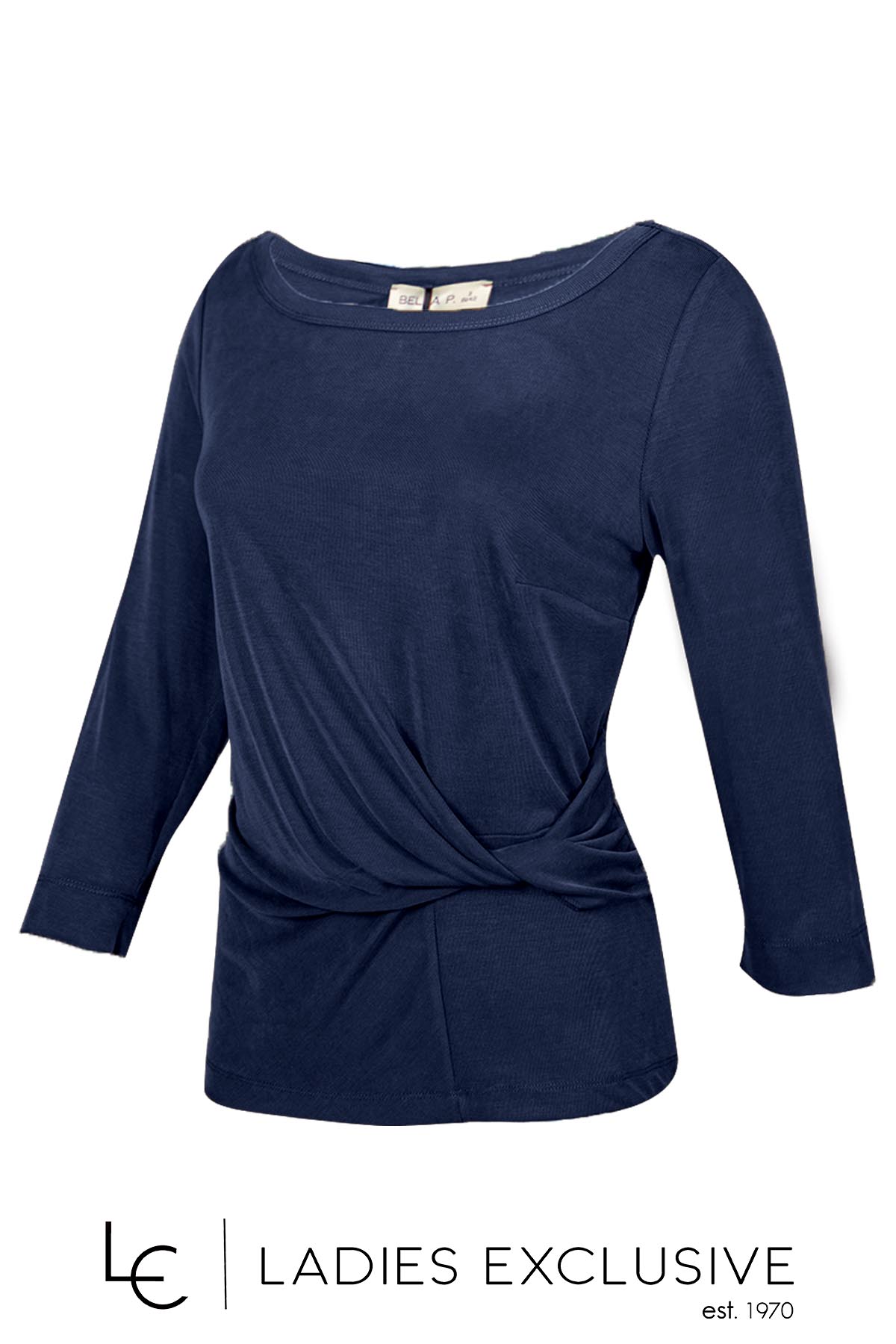 BELLA P. Μπλούζα μπλε με ιδιαίτερο ντραπέ σχέδιο, μανίκι 3/4 και μεγάλη ανοιχτή λαιμόκοψη.
