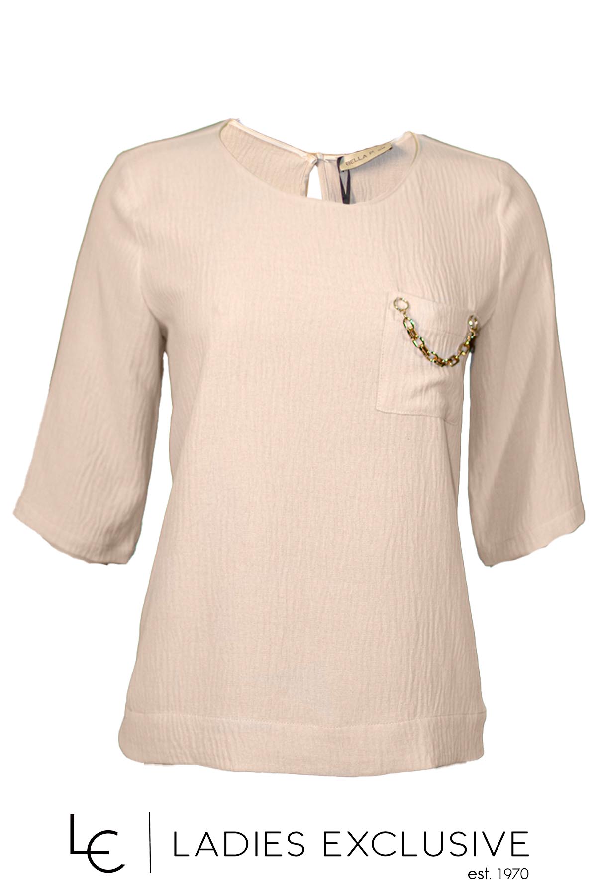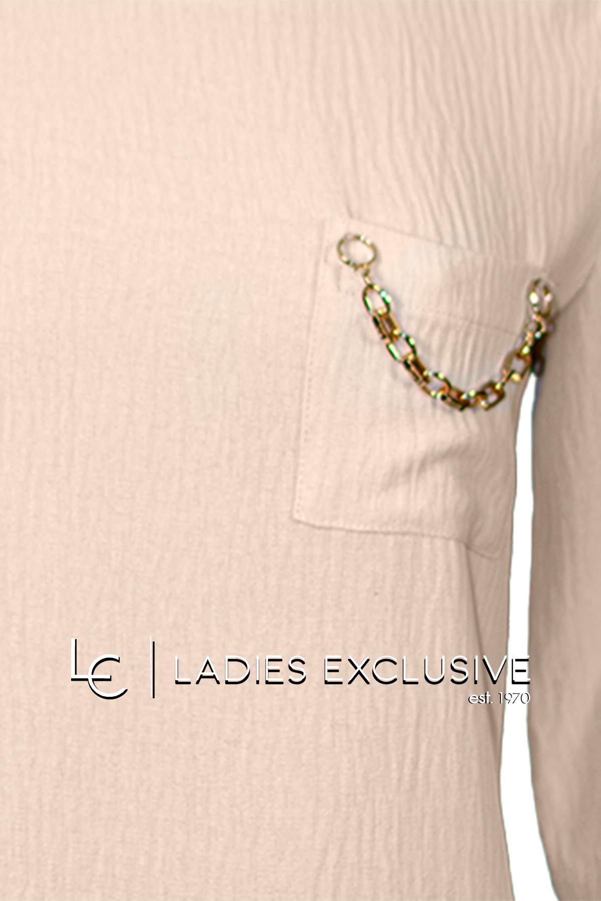 BELLA P. Μπλούζα μπεζ με μανίκι 3/4, τσέπη με αλυσιδάκι και ανάγλυφα σχέδια στην ύφανση.