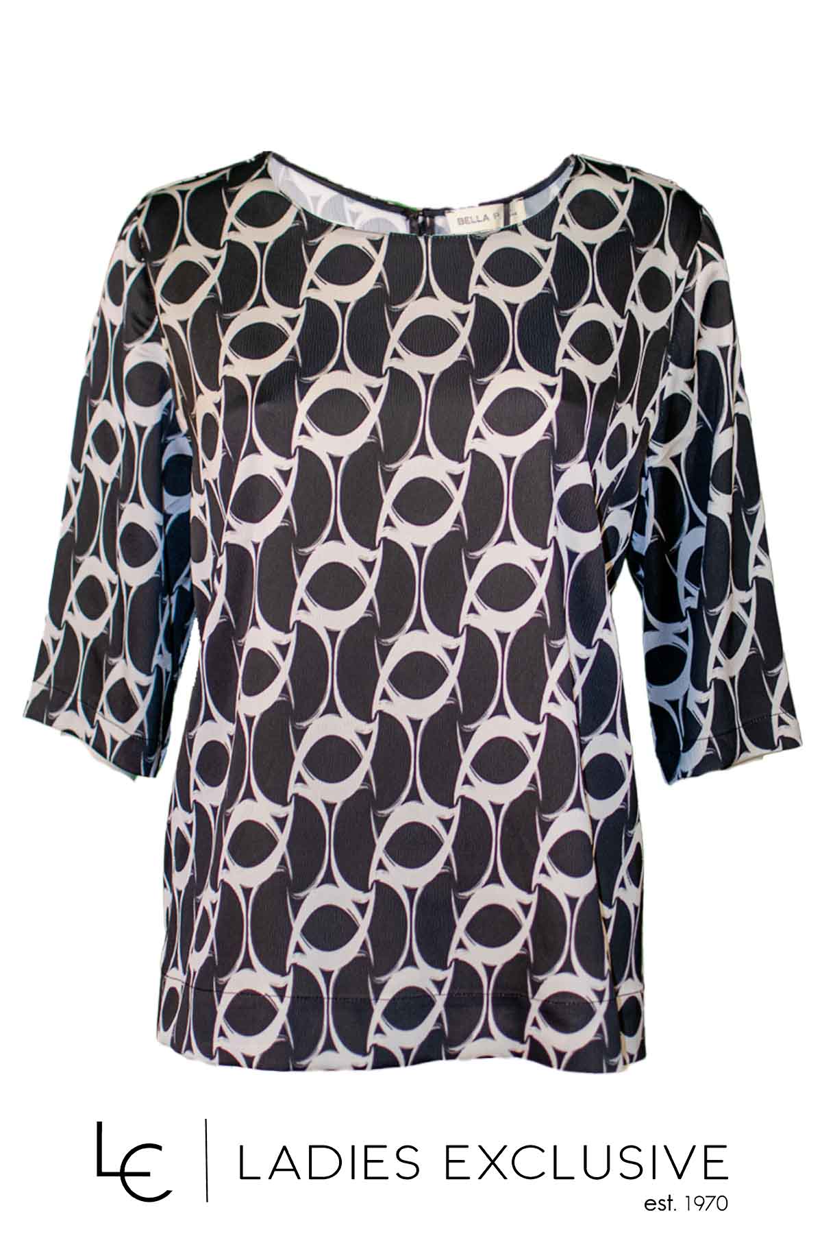 BELLA P. Μπλούζα καφέ με μπέζ σχέδια ριχτή, με μανίκι 3/4.