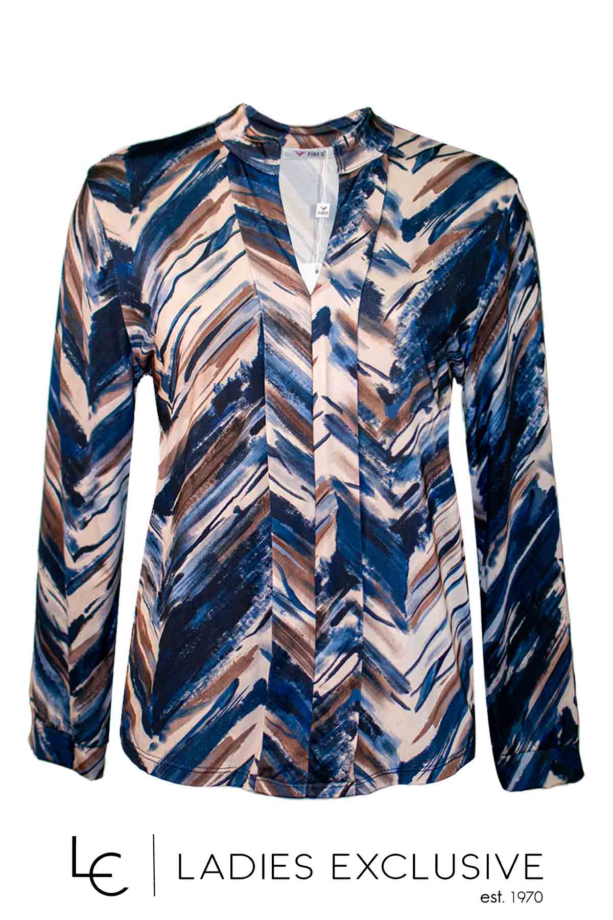 FIBES Μπλούζα σε μπλε αποχρώσεις με άνοιγμα v και πιέτα στο μπροστινό μέρος.