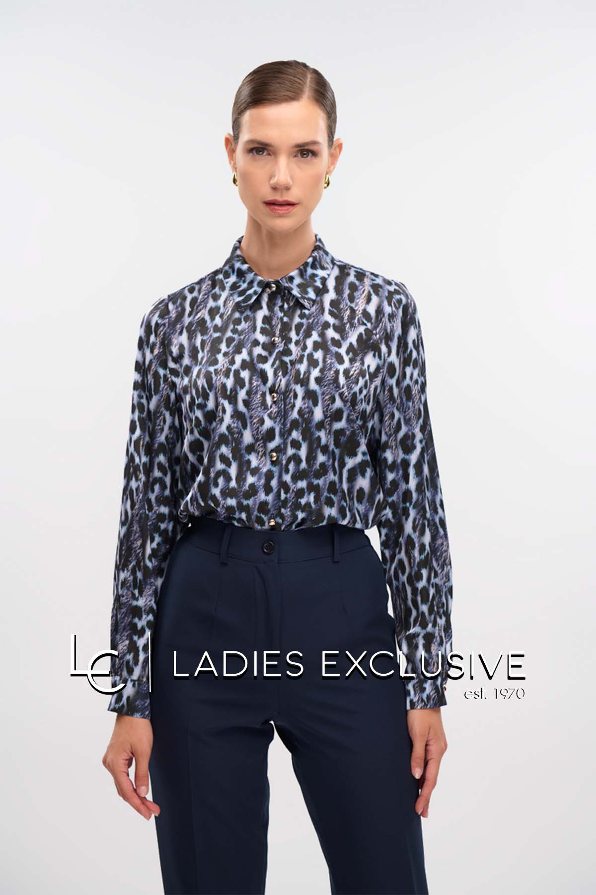 FIBES Πουκάμισο σε μπλε αποχρώσεις σατέν με πέτο γιακά και ιδιαίτερα κουμπιά.