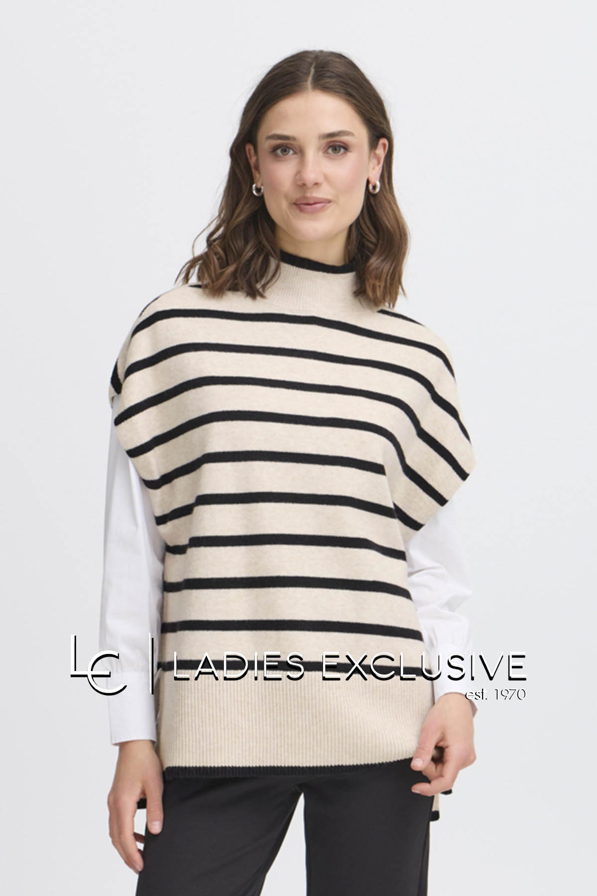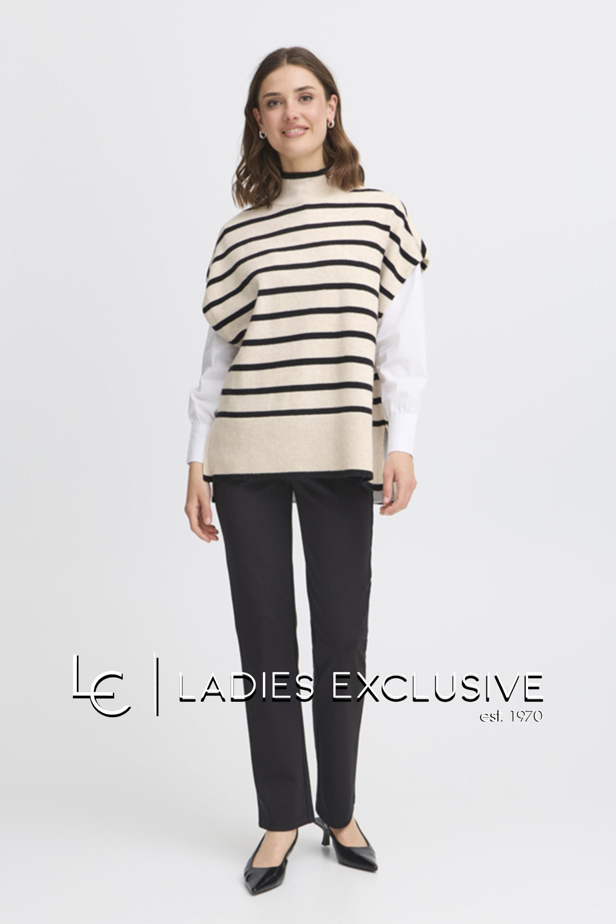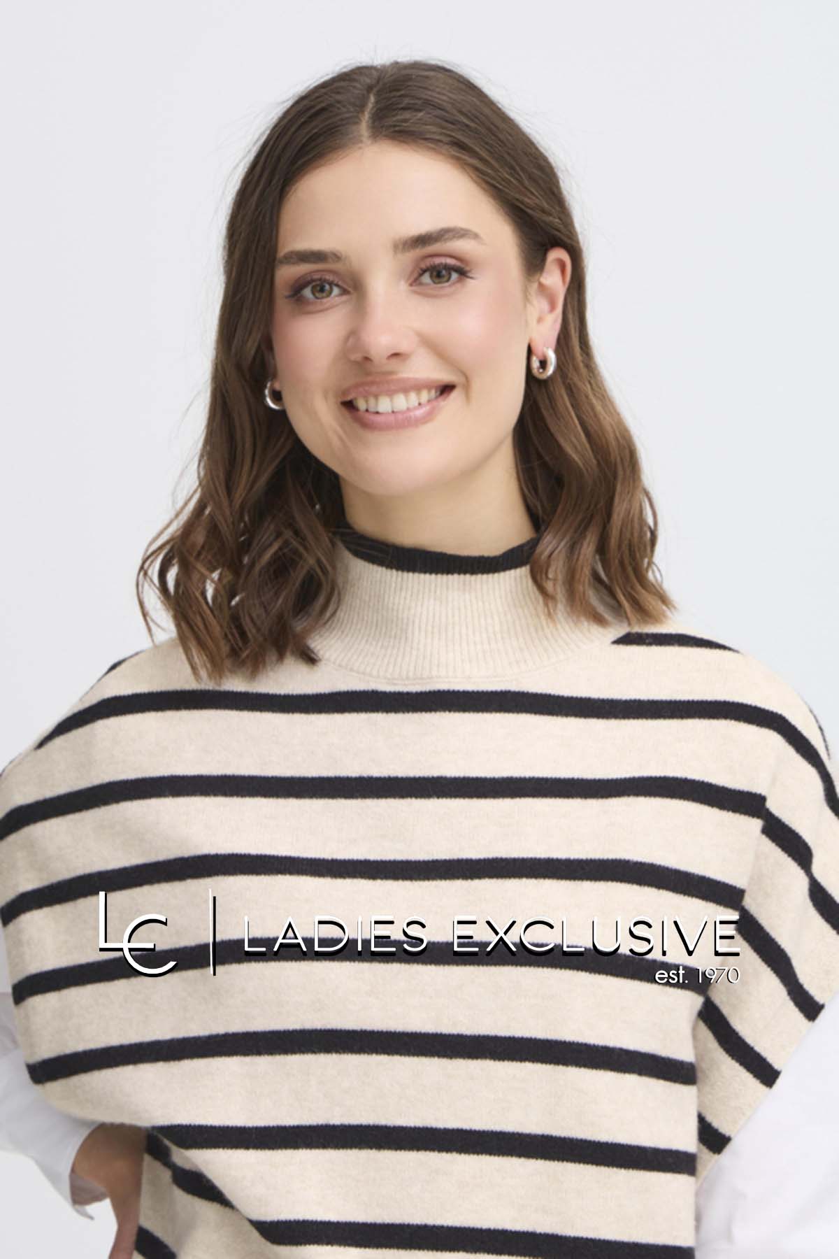 FRANSA Πόντσο ασπρόμαυρο ριγέ με όρθιο λαιμό.