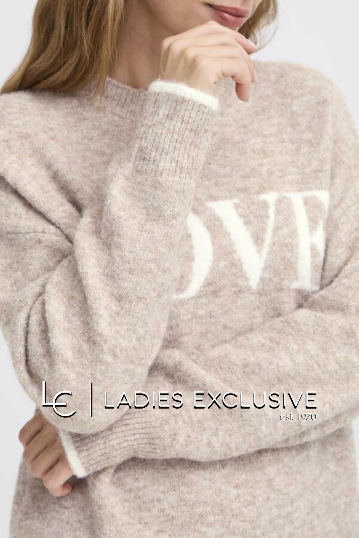 FRANSA Πουλόβερ μπεζ με λογότυπο LOVE και στρογγυλή λαιμόκοψη.