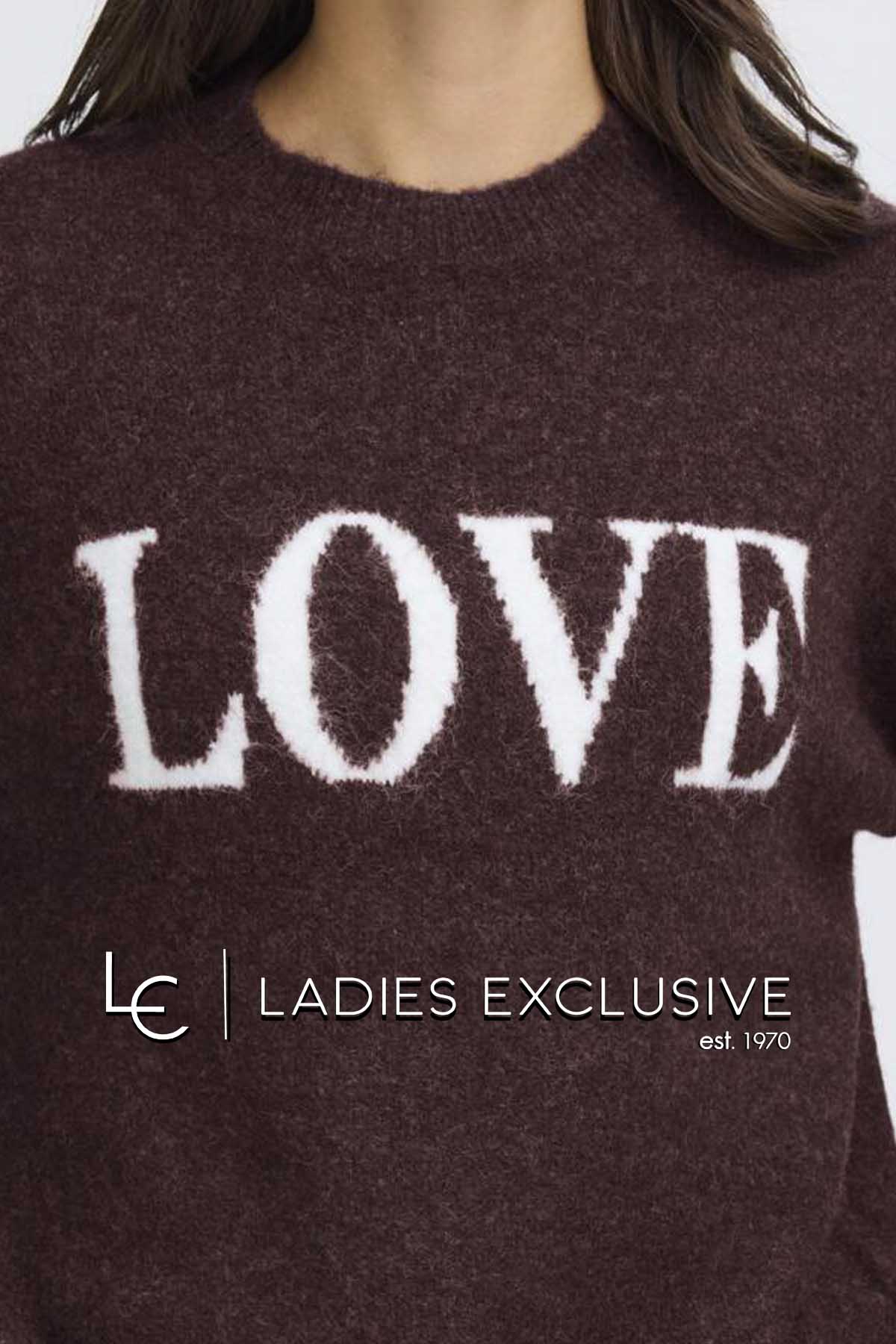 FRANSA Πουλόβερ γκρενά με λογότυπο LOVE και στρογγυλή λαιμόκοψη.