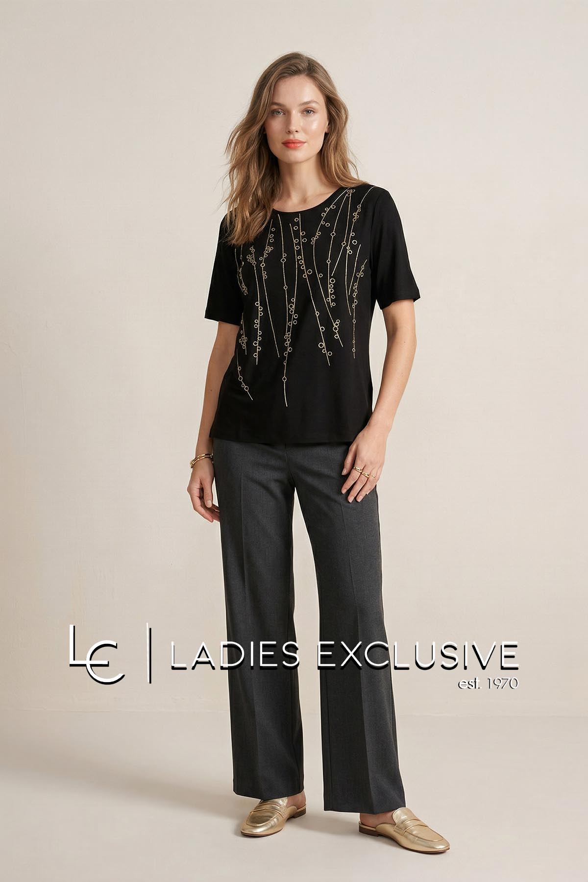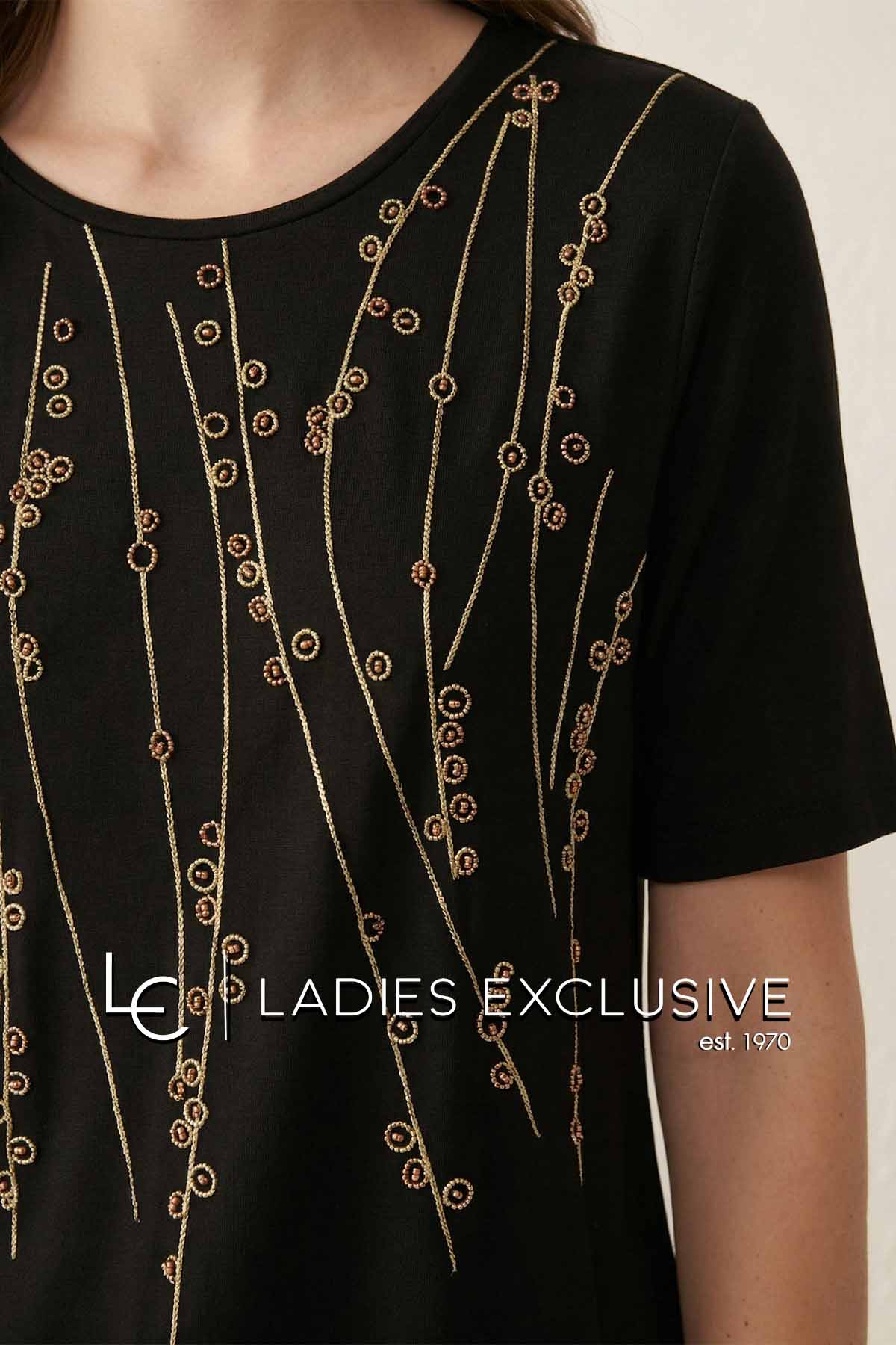 NICOLA Μπλούζα μαύρη κοντομάνικη με στάμπα κύκλους και μικρά στρας.