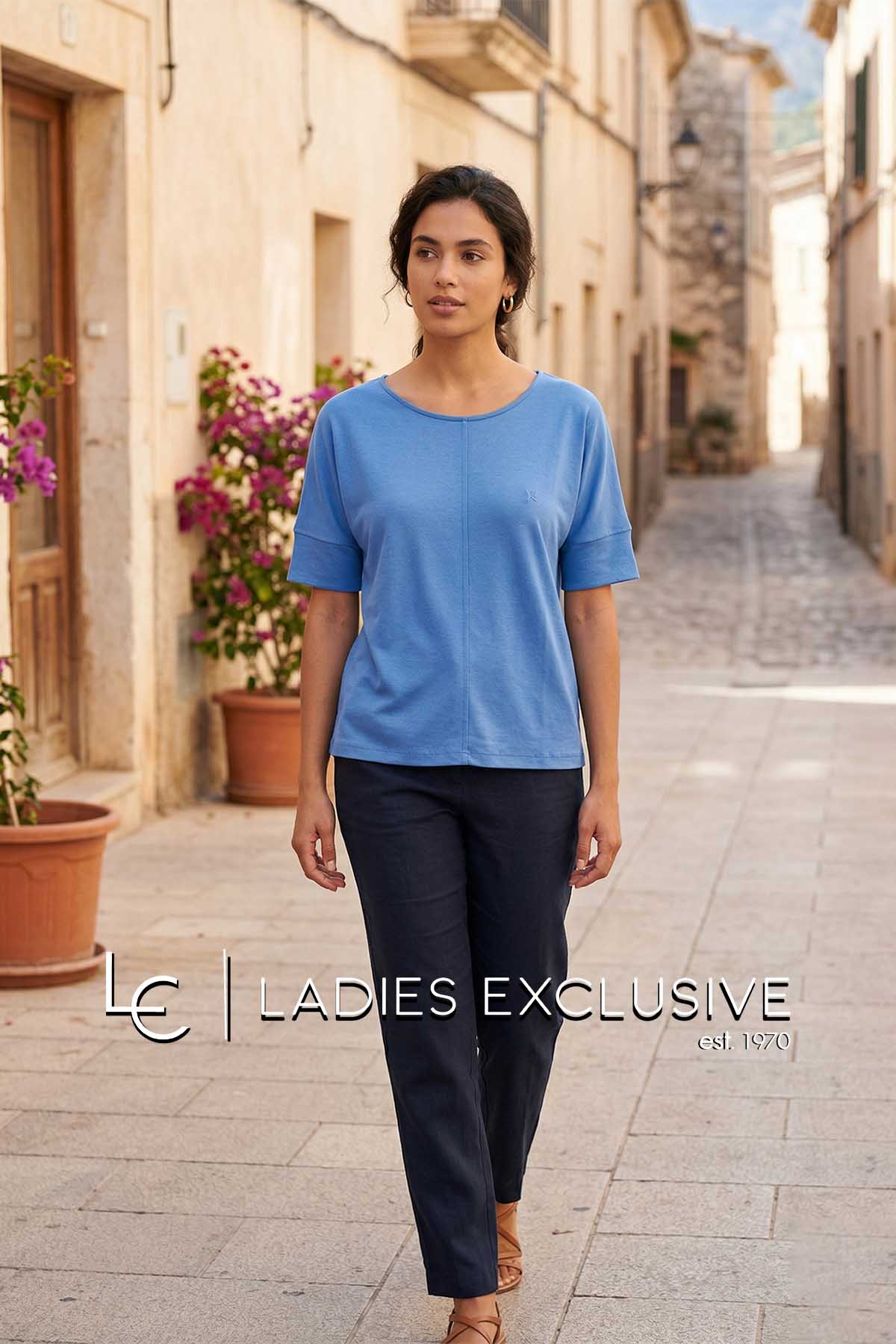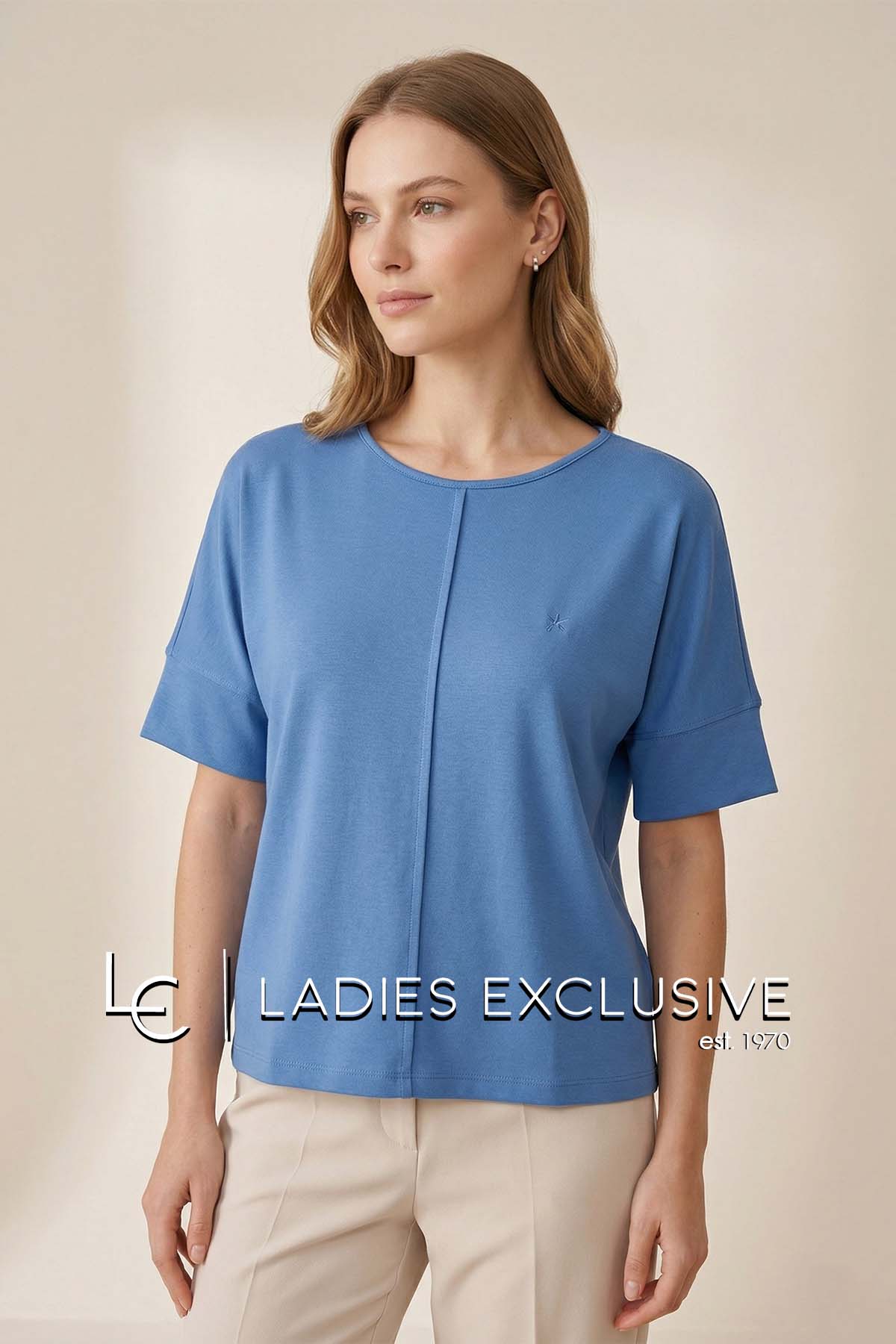 NICOLA Μπλούζα ίντιγκο κοντομάνικη με πιέτα στο μπροστινό μέρος και μανίκι ρεγκλάν.