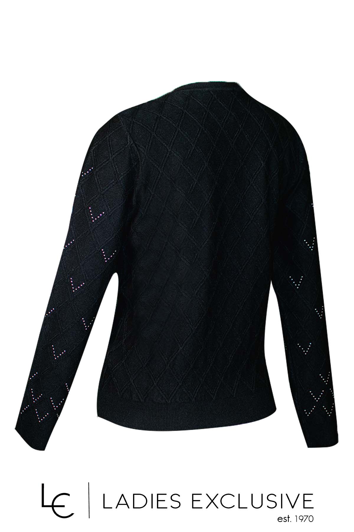 NICOLA Μπλούζα μαύρο με άνοιγμα v και ανάγλυφους ρόμβους με στρας στην ύφανση.
