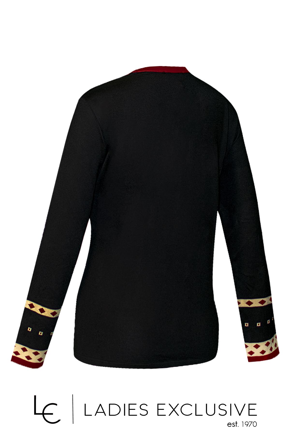 NICOLA Μπλούζα μαύρη με μικρά σχέδια και κόκκινες λεπτομέρειες με στρας.