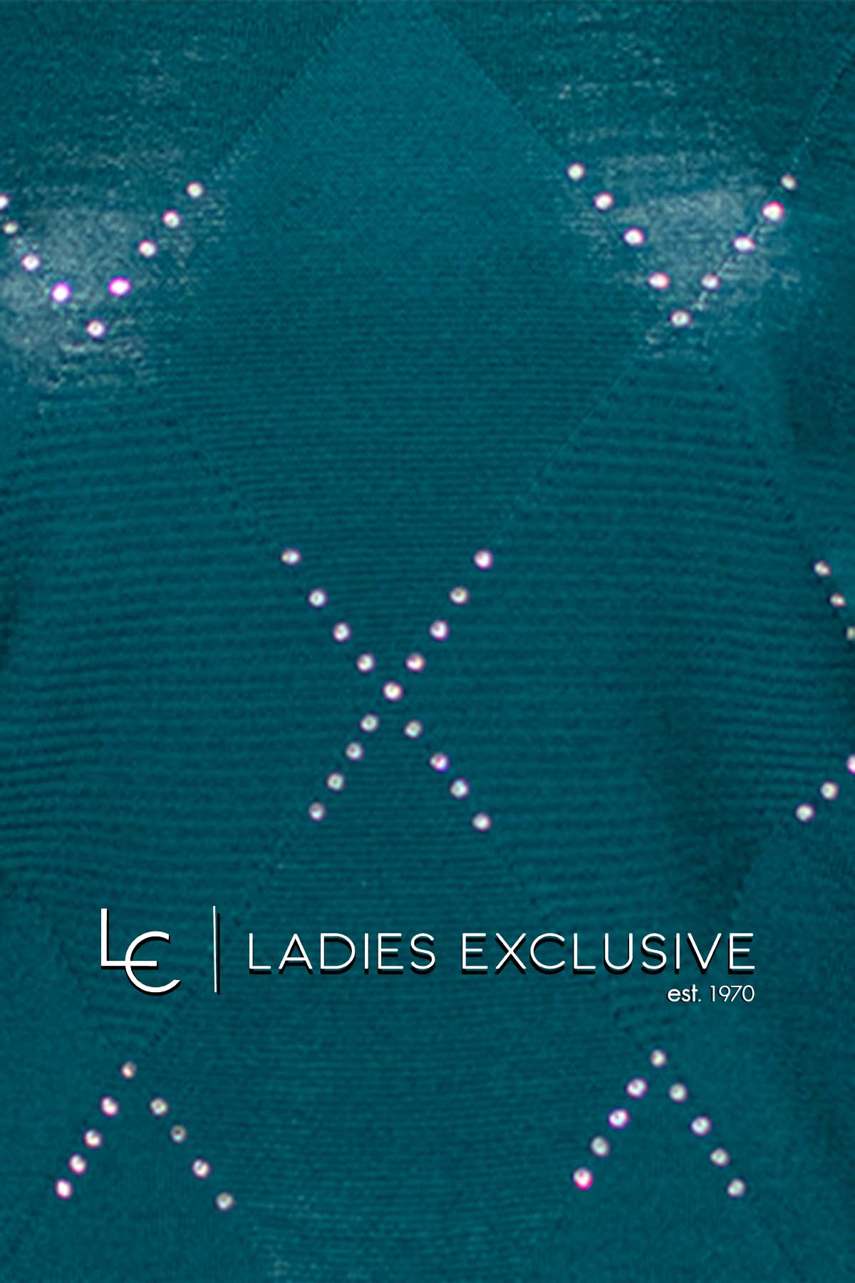 NICOLA Μπλούζα πράσινη μάλλινη με ρόμβους και στρας.