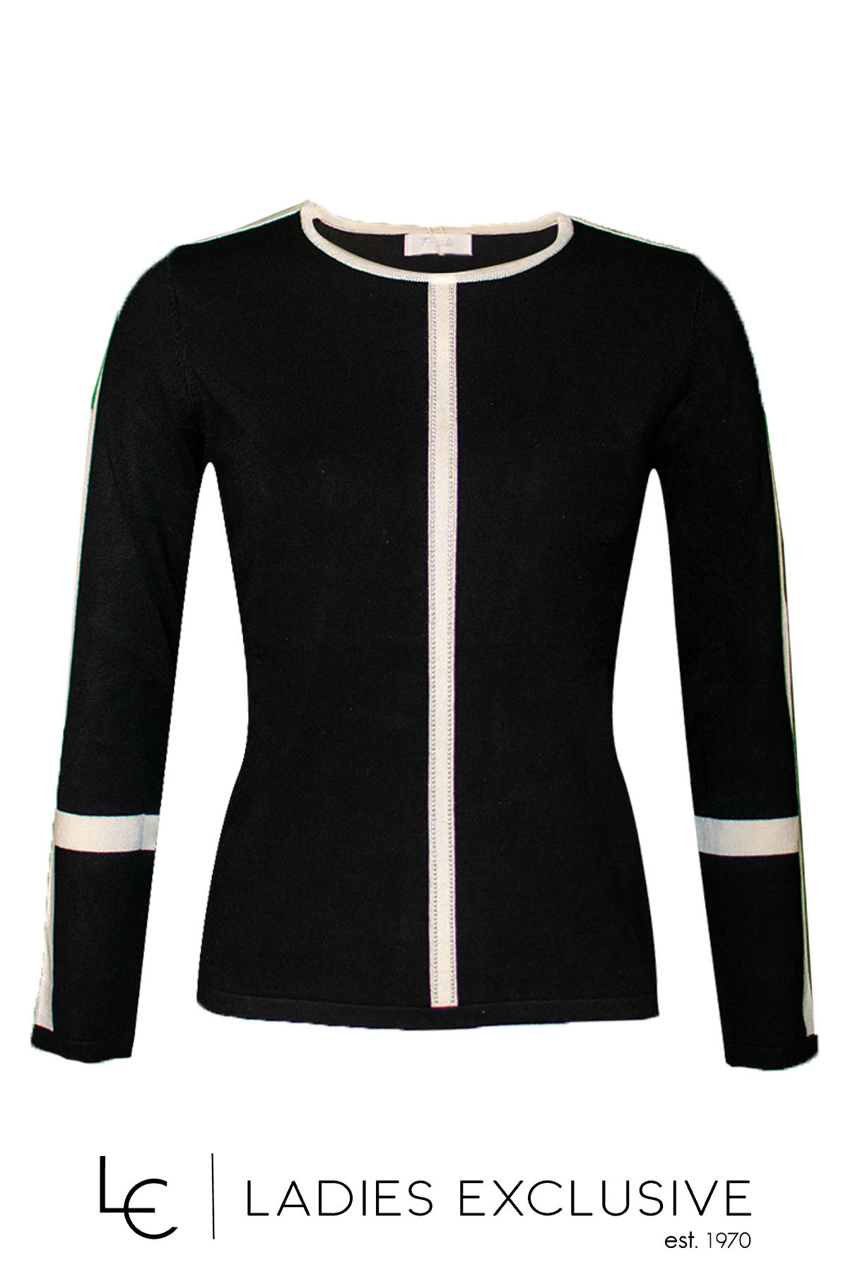 TRIPODE Μπλούζα πλεκτή ασπρόμαυρη με μικρά τρουκς στο μπροστινό μέρος.
