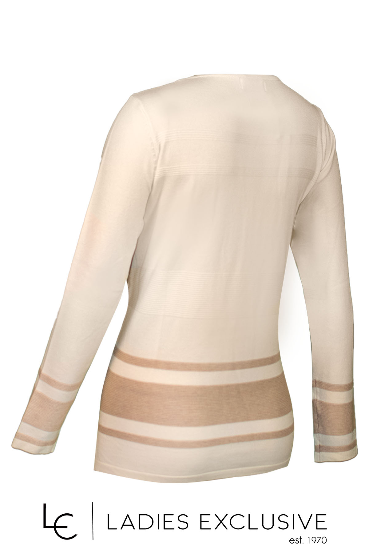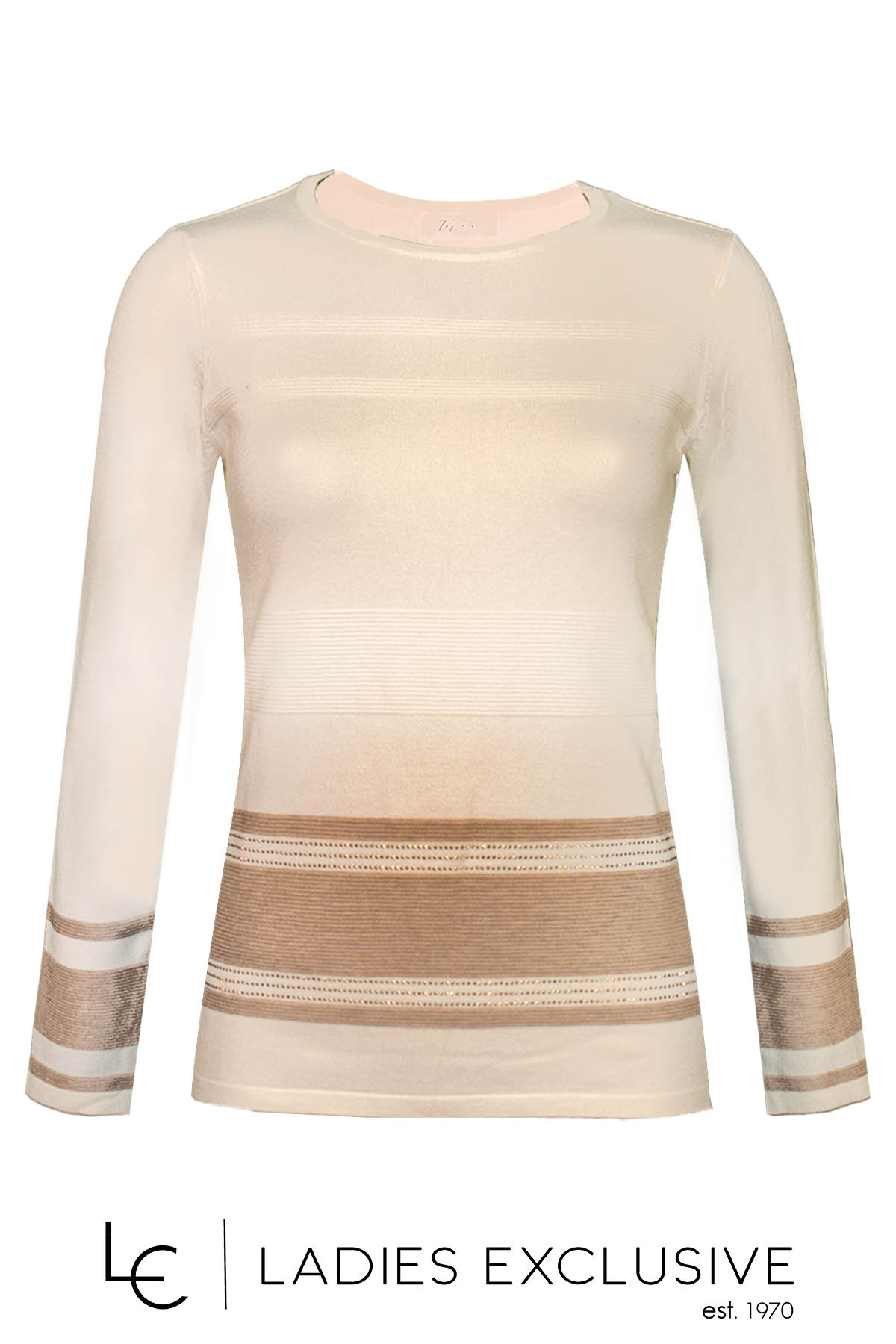 TRIPODE Μπλούζα εκρού πλεκτή με ανάγλυφες ρίγες και μπεζ λεπτομέρειες με μικρά τρουκς στο κάτω μέρος.