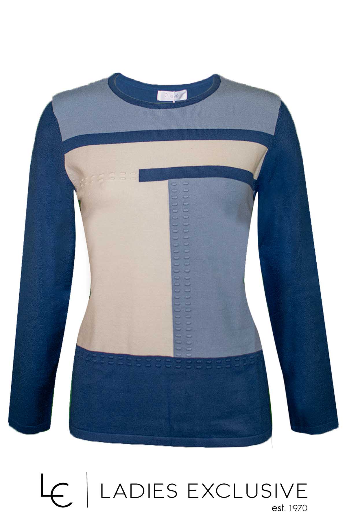 TRIPODE Μπλούζα μπλε σιέλ πλεκτή με ανάγλυφο σχέδιο και στρογγυλή λαιμόκοψη.