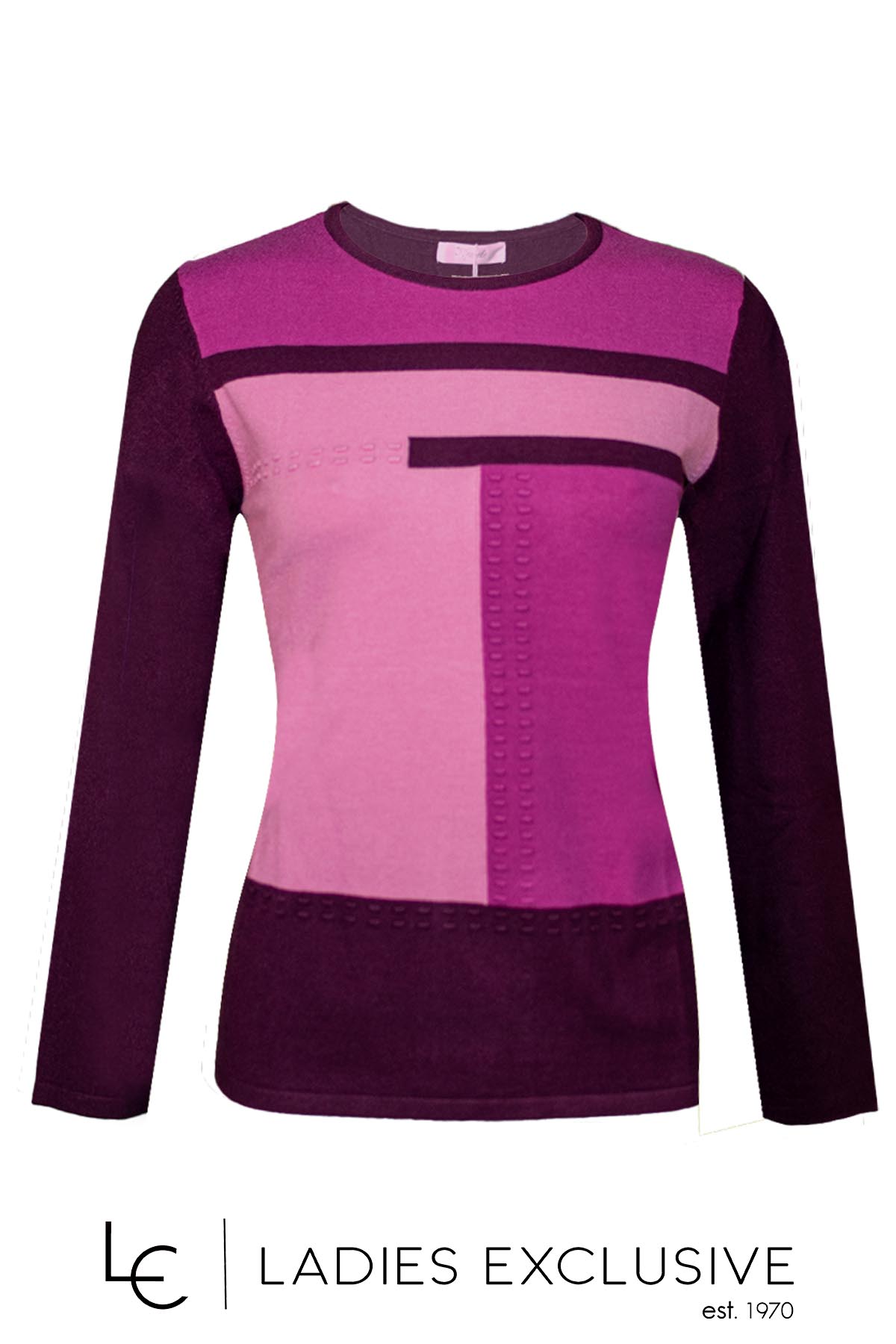 TRIPODE Μπλούζα μπορντώ ροζ πλεκτή με ανάγλυφο σχέδιο και στρογγυλή λαιμόκοψη.