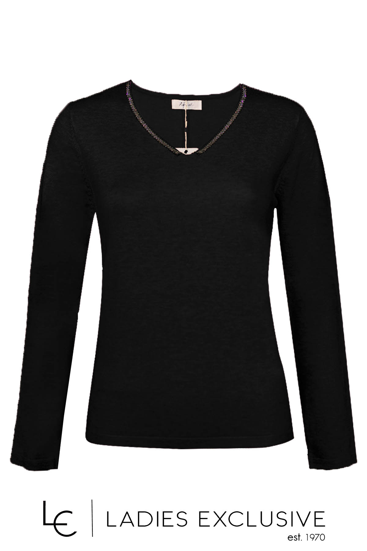 TRIPODE Μπλούζα μαύρη πλεκτή με άνοιγμα v και μικρά τρουκς.