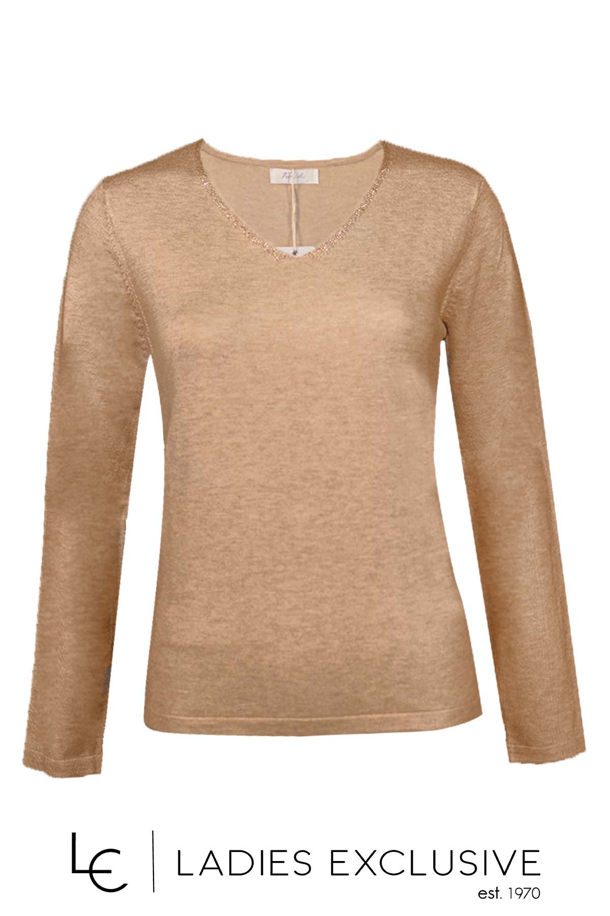 TRIPODE Μπλούζα μπεζ πλεκτή με άνοιγμα v και μικρά τρουκς.