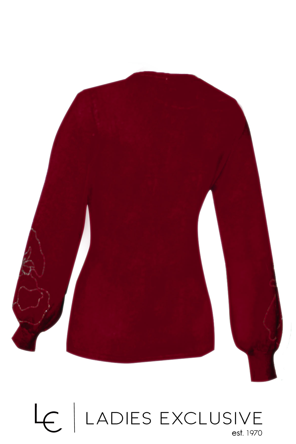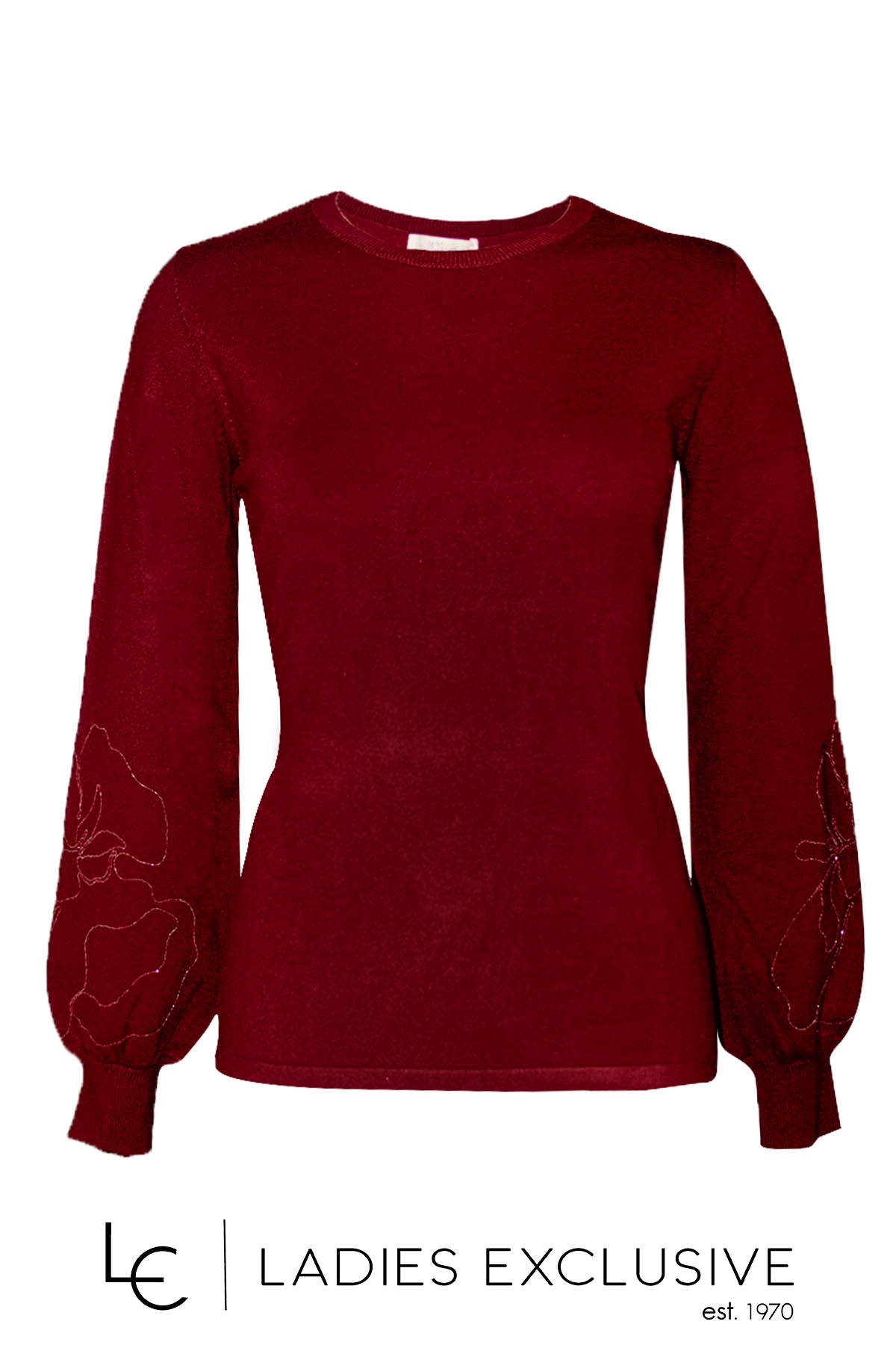 TRIPODE Μπλούζα μπορντώ πλεκτή με κεντημα λουλούδι στο μανίκι.