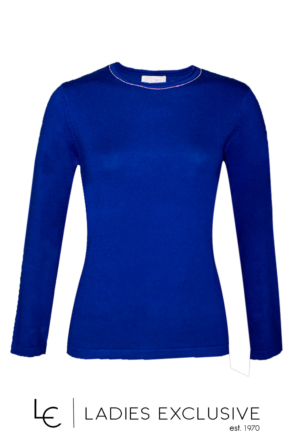 TRIPODE Μπλούζα μπλε ρουά πλεκτή με στρας στη λαιμόκοψη.