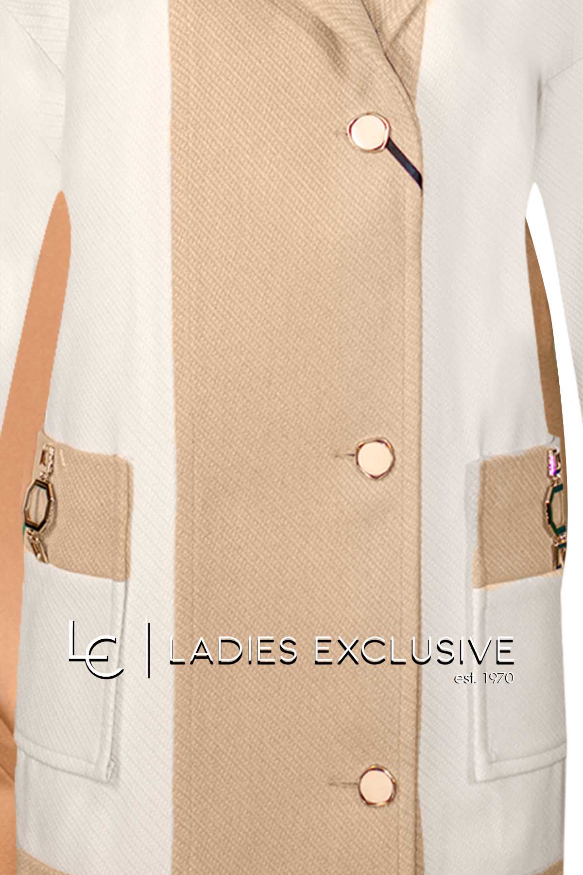 BELLA P. Ημίπαλτο εκρού με διχρωμία μπεζ στο πέτο και στα μανίκια και μεγάλες εξωτερικές τσέπες με αγκράφα.