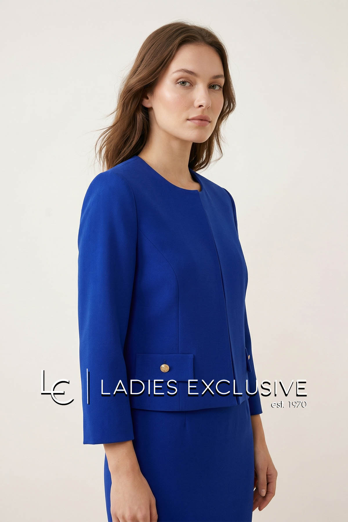 ESTEL Μπολερό μπλε ρουά κρεπ με μανίκι 3/4. Γίνεται σετ με το φόρεμα με κωδικό 08824-00.14.