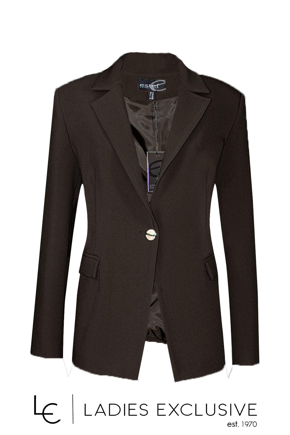 ESTEL Σακάκι μαύρο με πέτο γιακά με μονό κουμπί. Γίνεται σετ με το παντελόνι με κωδικό 08505-00.01.