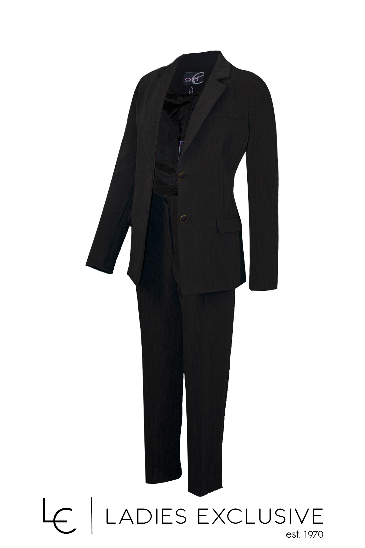 ESTEL Σακάκι μαύρο με πέτο γιακά και τσέπες με καπάκια. Γίνεται σετ με το παντελόνι με κωδικό 08505-00.01 και με τη φούστα με κωδικό 08508-00.01.