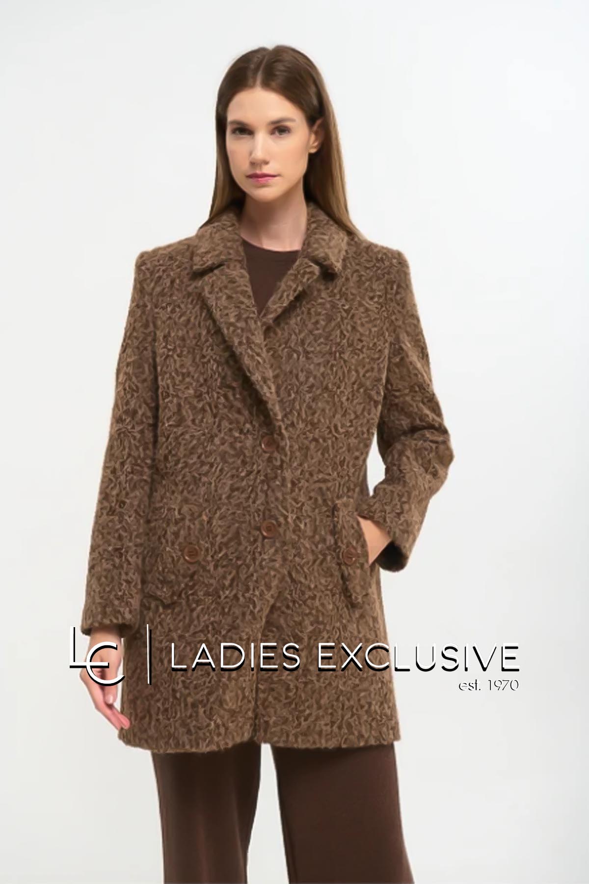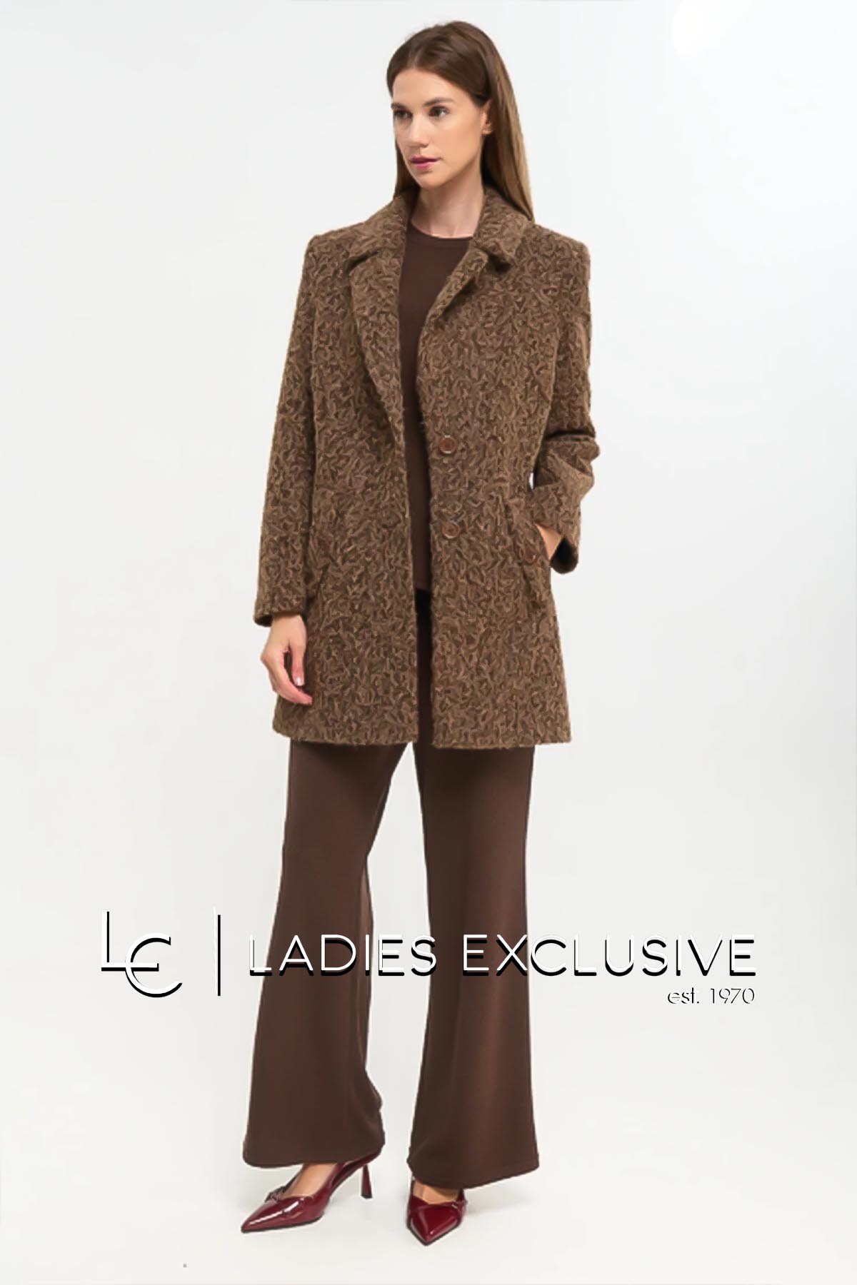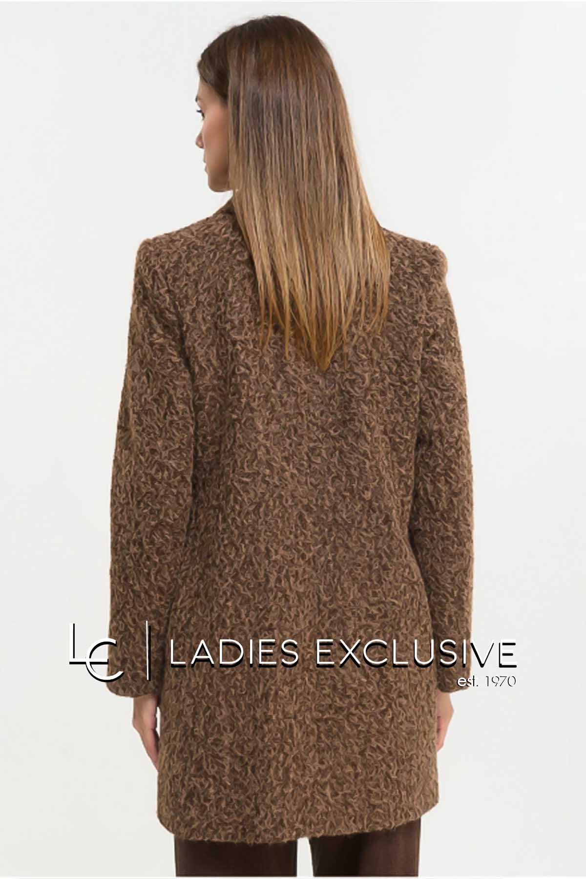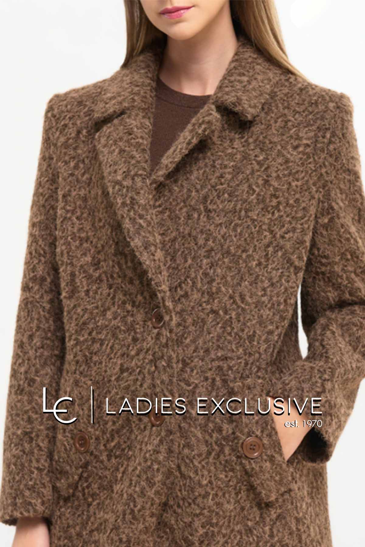 FIBES Ημίπαλτο καφέ μπουκλέ βρασμένο μαλλί με πλαϊνές τσέπες με κουμπιά.