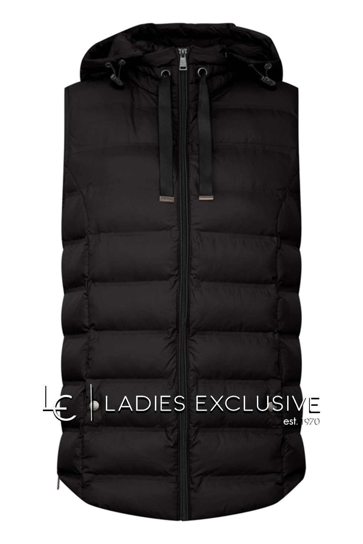 FRANSA Μπουφάν μαύρο αμάνικο με κουκούλα που αφαιρείται και ανοίγματα στο πλάι με φερμουάρ.
