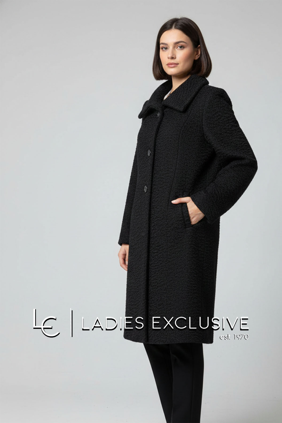 VIDAL Παλτό μαύρο μπουκλέ με μικρά πέτα.