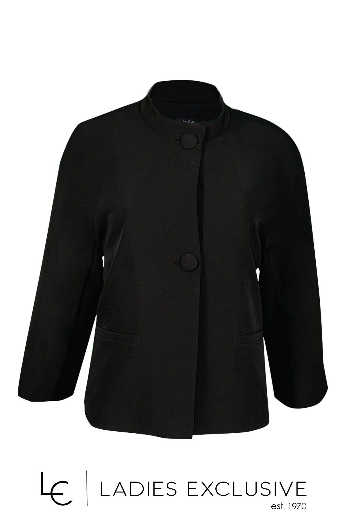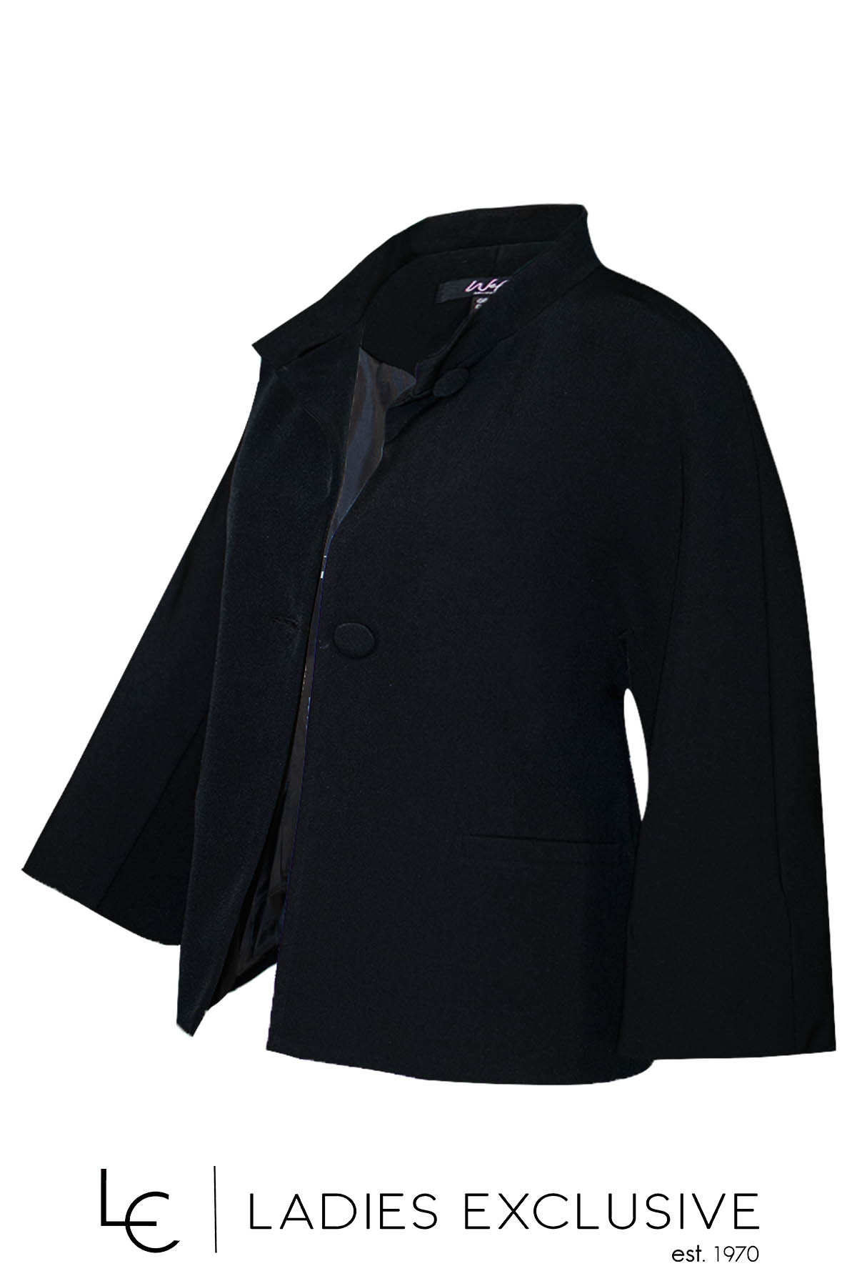 WEFTS Σακάκι μπολερό μαύρο κρεπ σε γραμμή Α, με όρθιο γιακά και μανίκι 3/4.