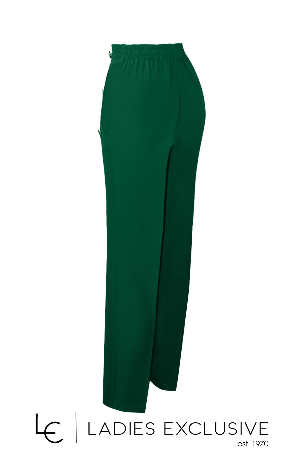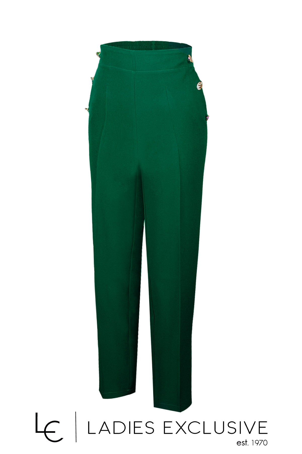 EFFECT Παντελόνι πράσινο κρεπ με λάστιχο στη μέση και διακοσμητικά κουμπιά στις πλαϊνές τσέπες. ΔΙΝΕΤΑΙ ΜΟΝΟ ΣΑΝ ΣΕΤ με το σακάκι με κωδικό 25-501-2734.04.