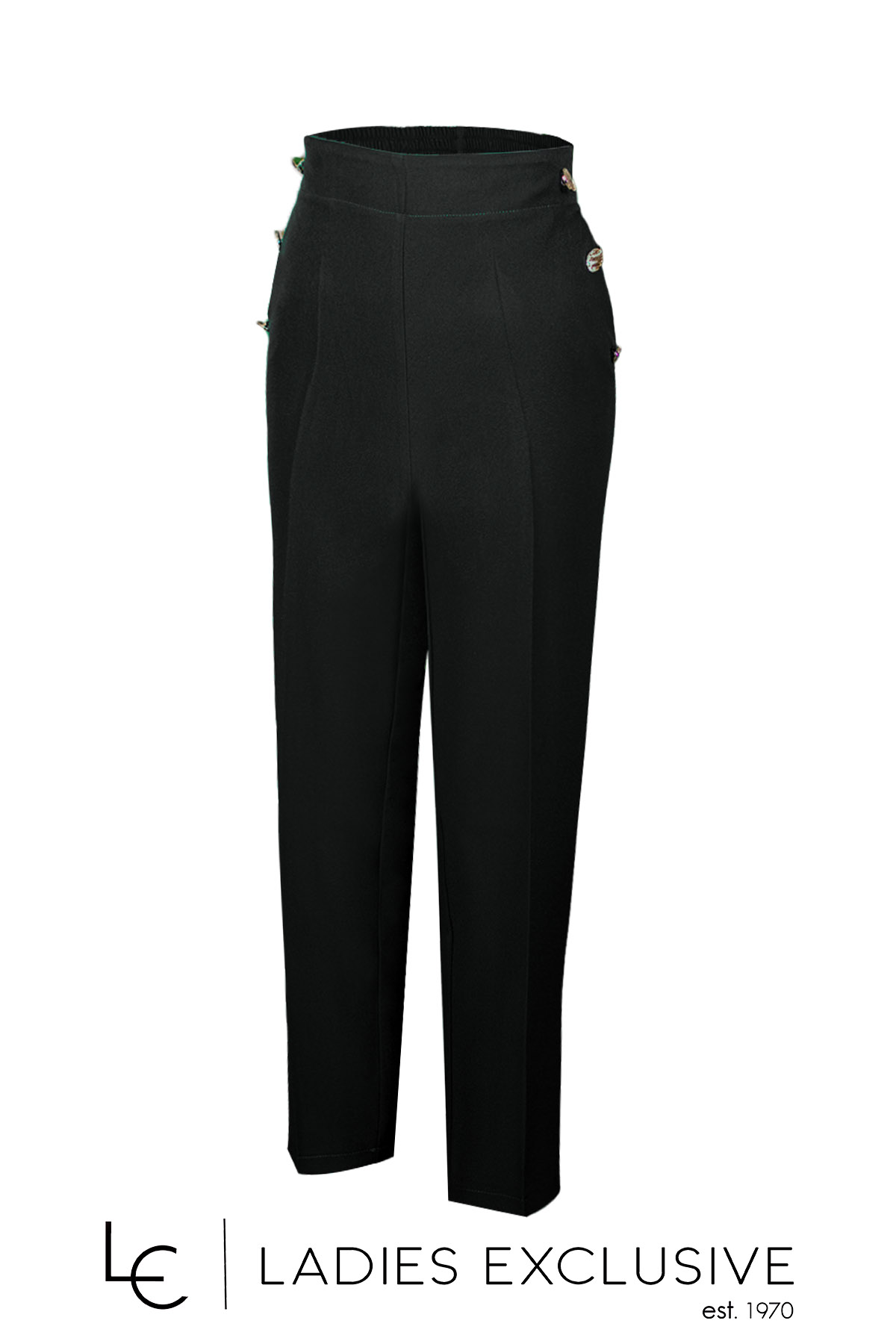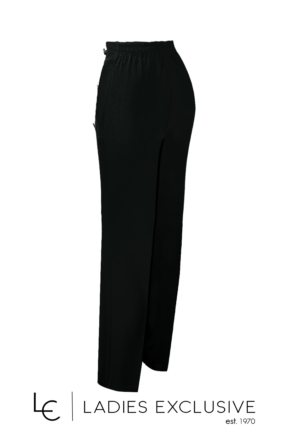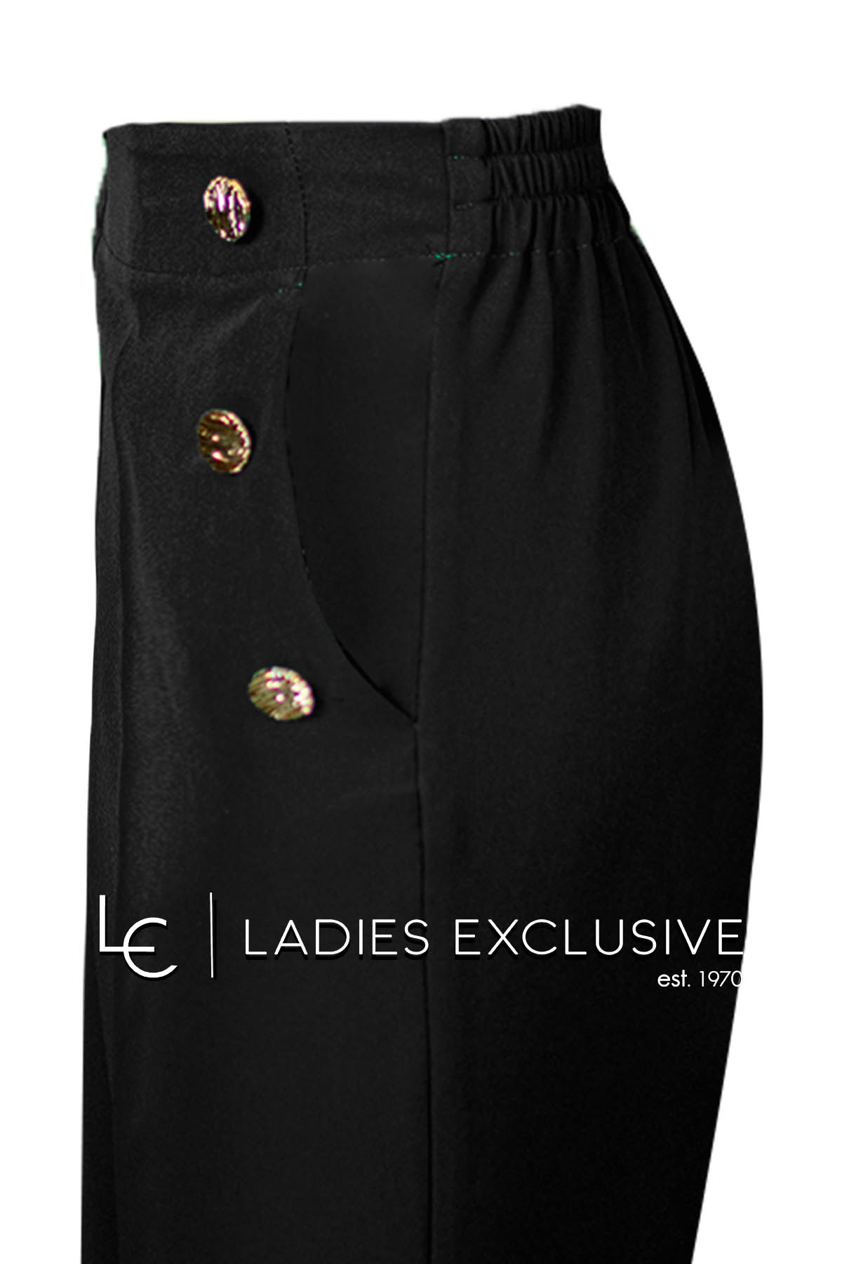EFFECT Παντελόνι μαύρο κρεπ με λάστιχο στη μέση και διακοσμητικά κουμπιά στις πλαϊνές τσέπες. ΔΙΝΕΤΑΙ ΜΟΝΟ ΣΑΝ ΣΕΤ με το σακάκι με κωδικό 25-501-2734.01.