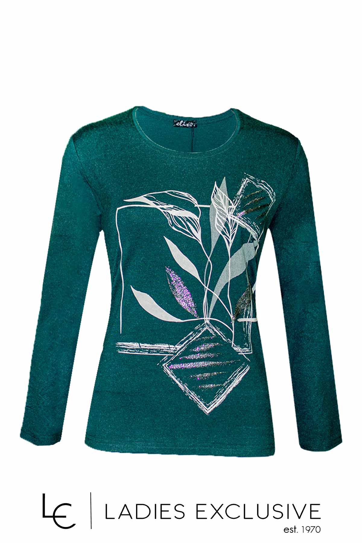 ELIN Μπλούζα πράσινη από βισκόζη με στάμπα λουλούδι με λάμψη.