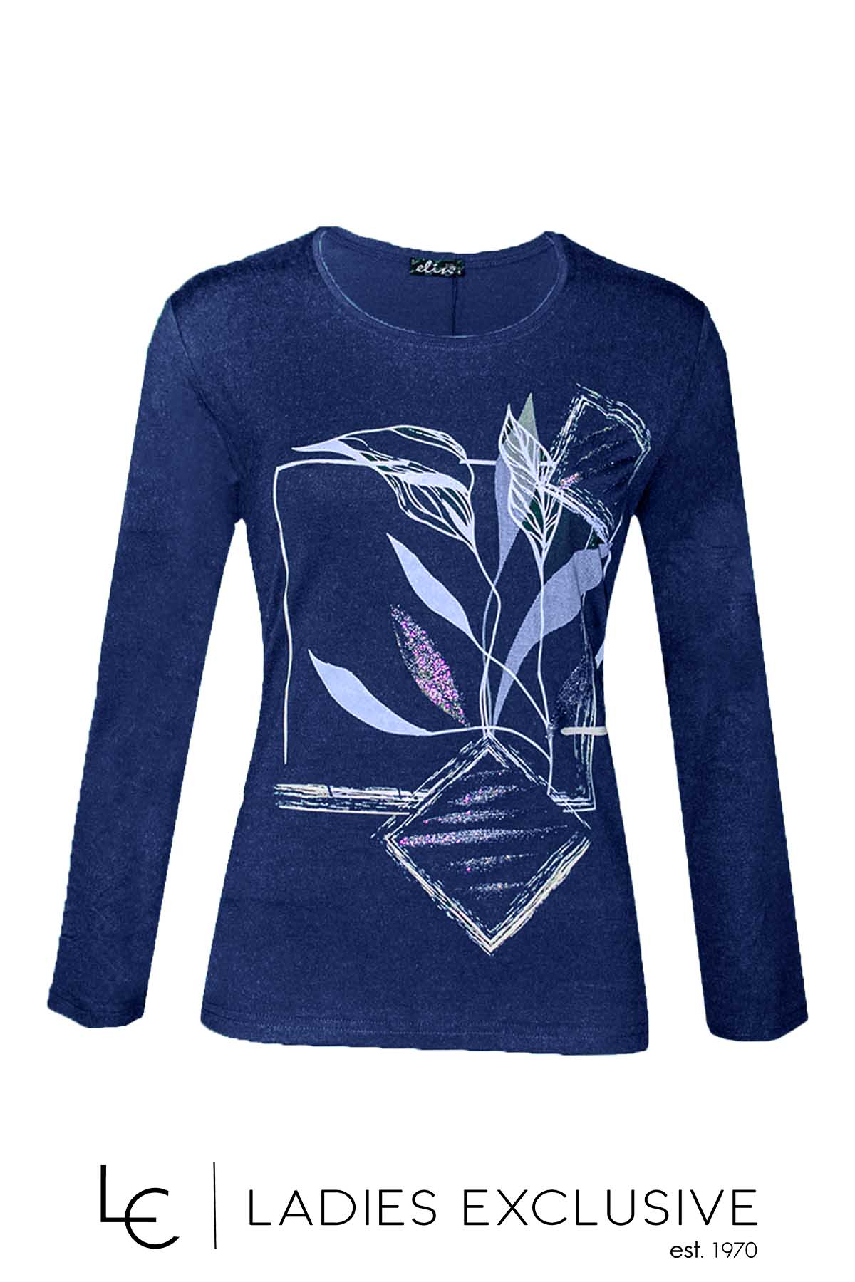 ELIN Μπλούζα μπλε από βισκόζη με στάμπα λουλούδι με λάμψη.