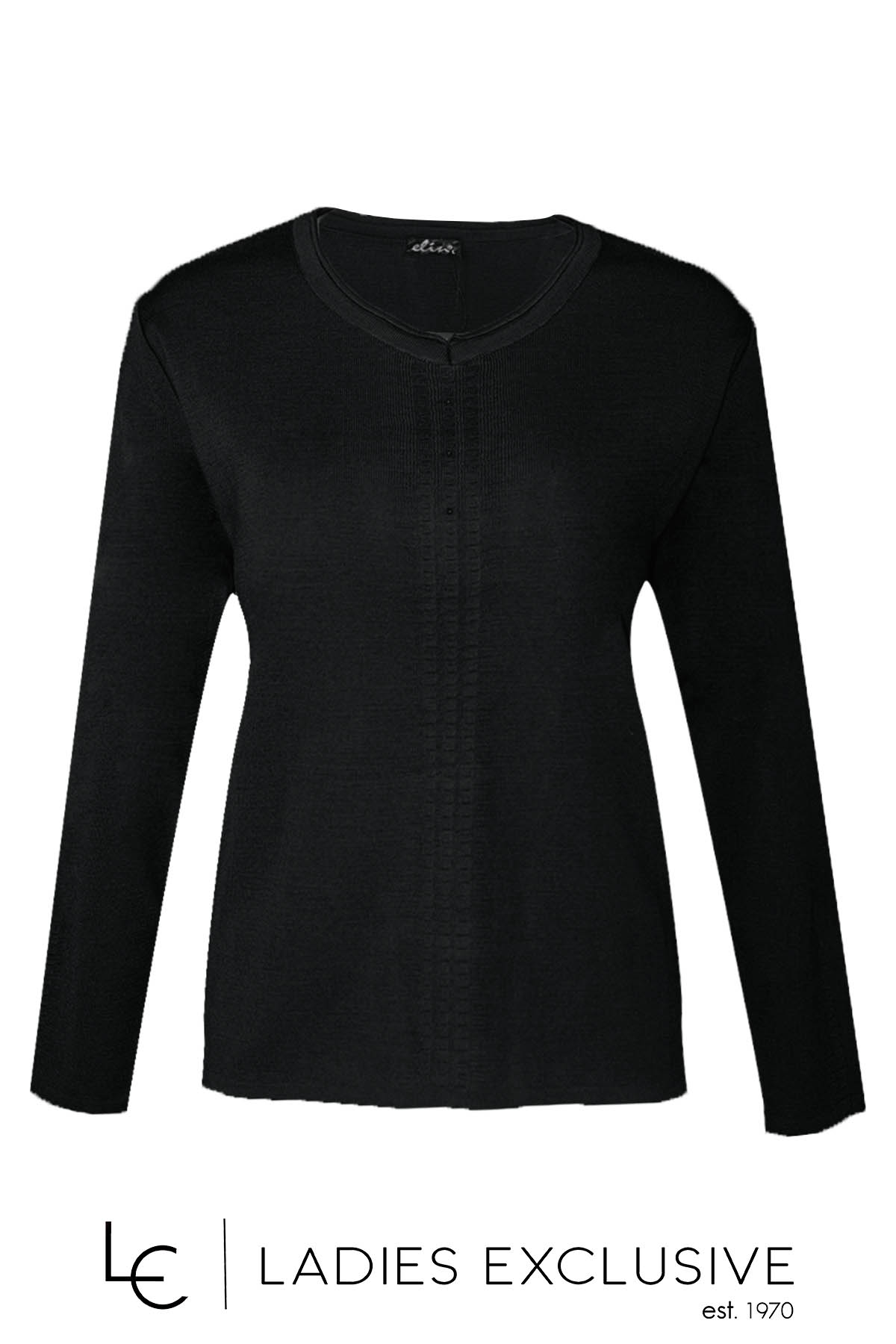 ELIN Μπλούζα μαύρη μάλλινη με άνοιγμα v και διακριτικά στρας.