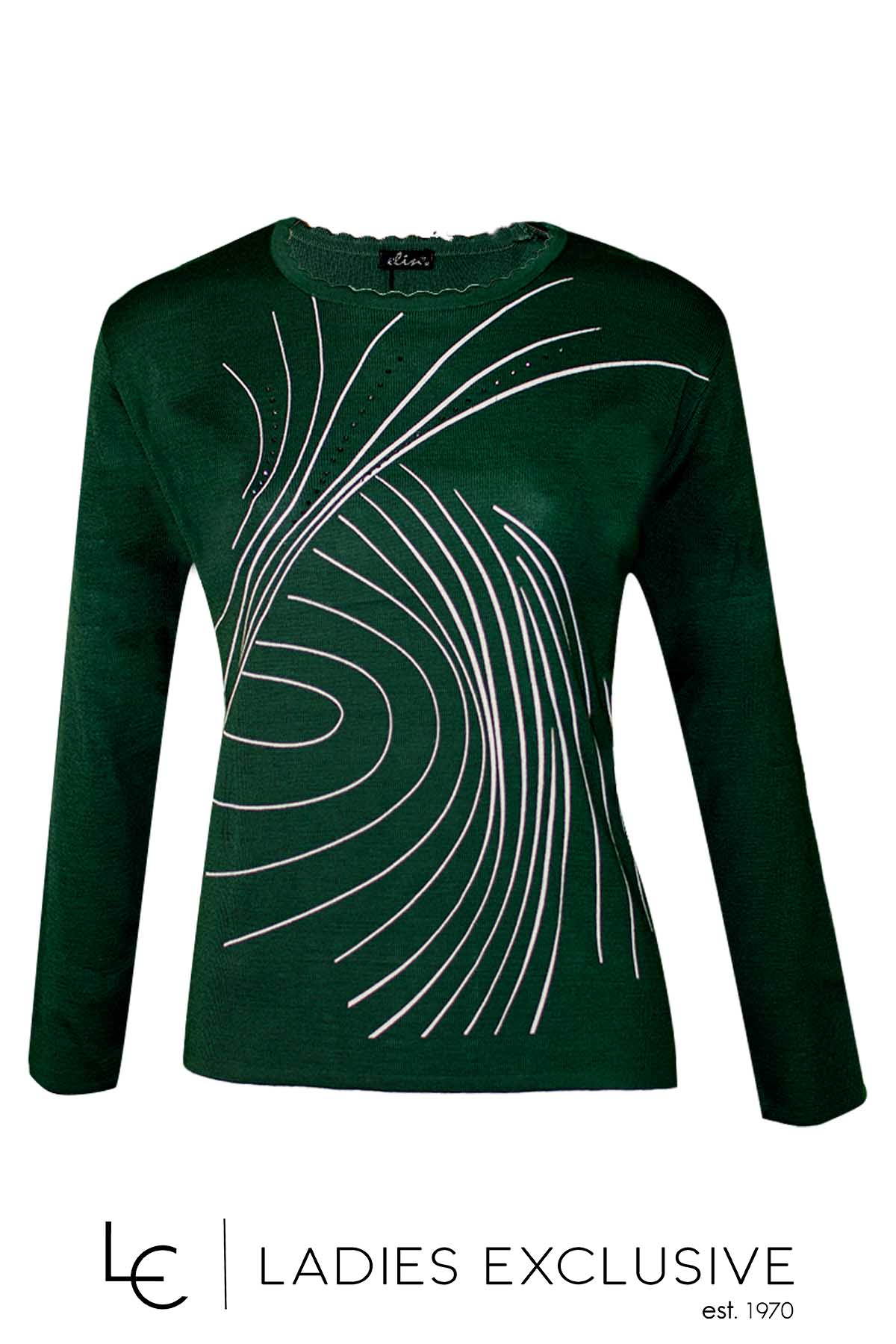 ELIN Μπλούζα πράσινη μάλλινη με στάμπα γραμμές και στρας.