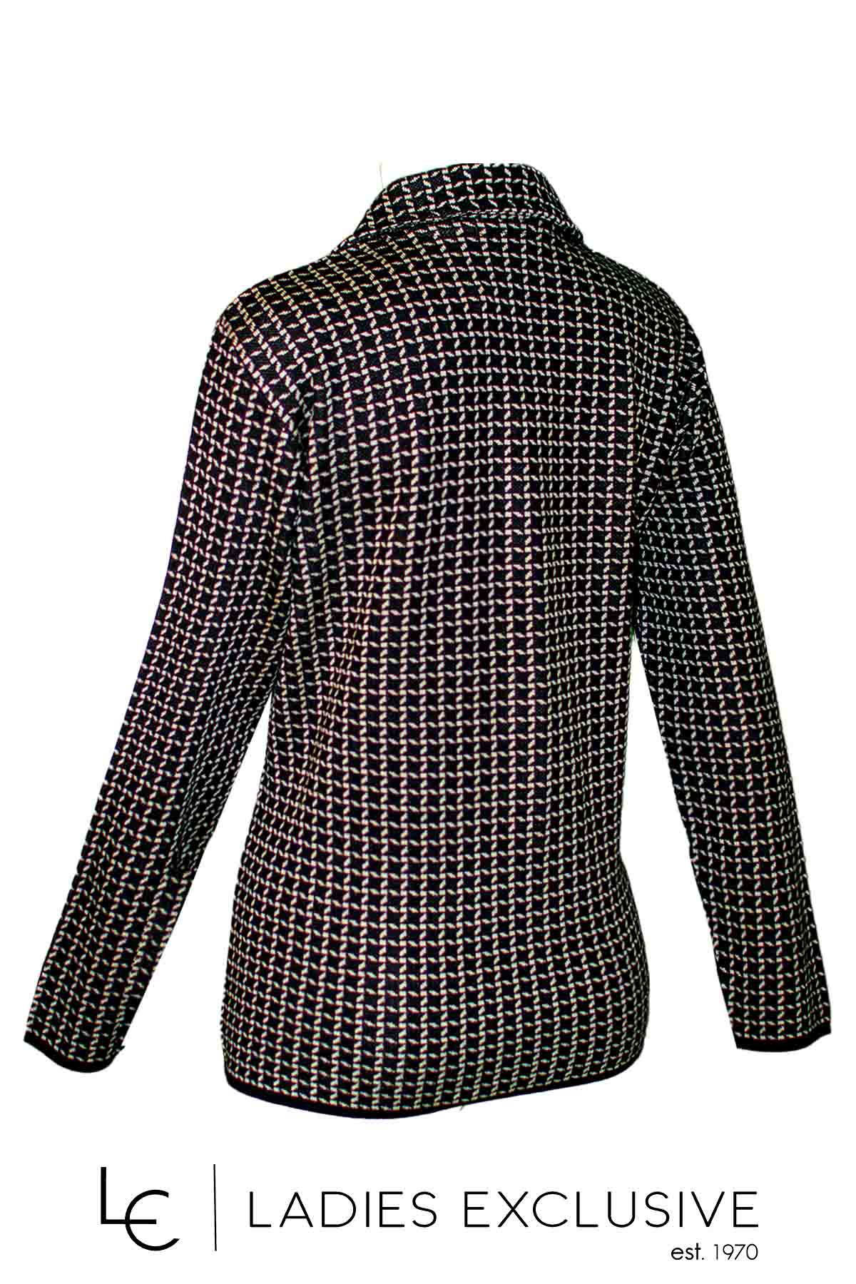ELIN Ζακέτα ασπρόμαυρη μάλλινη με πέτο γιακά, κουμπιά και τσέπες.