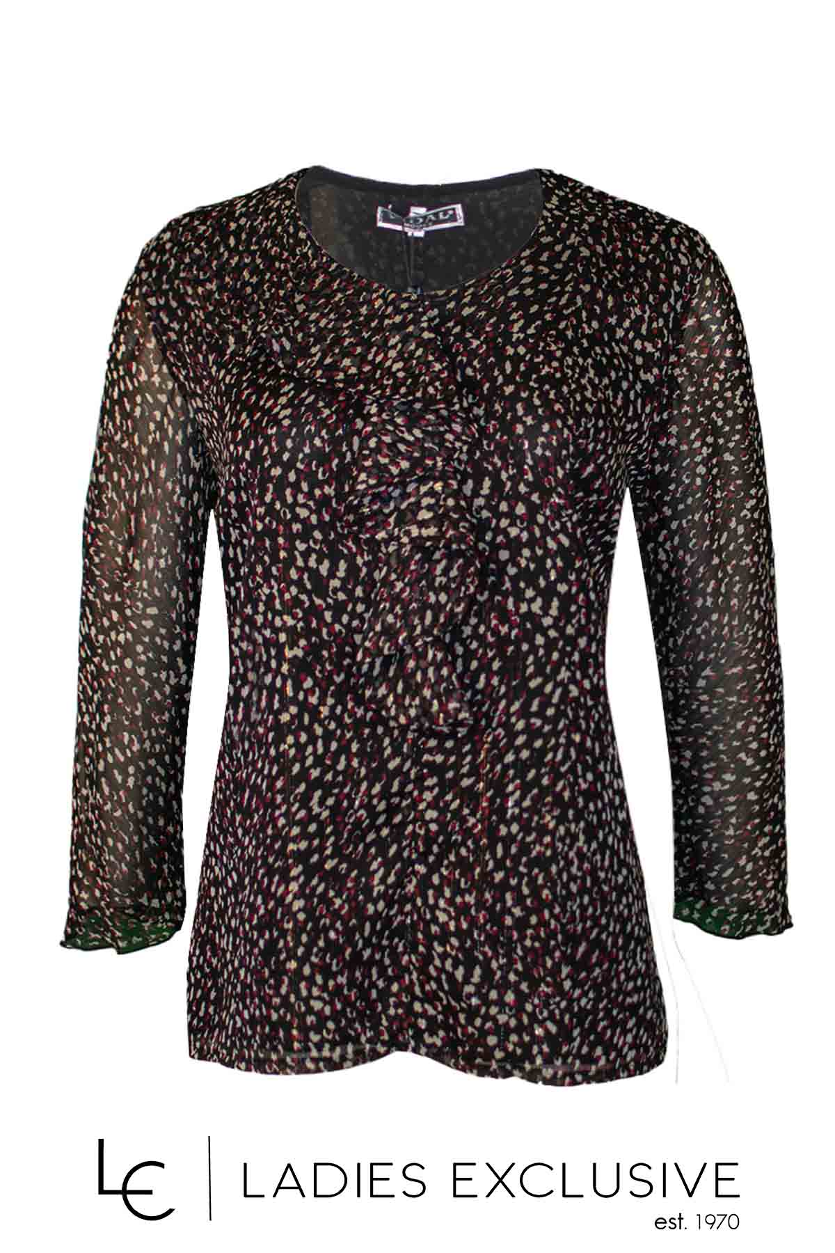 VIDAL Μπλούζα animal print σε μπορντώ απόχρωση από μουσελίνα, με βολάν στο μπροστινό μέρος.