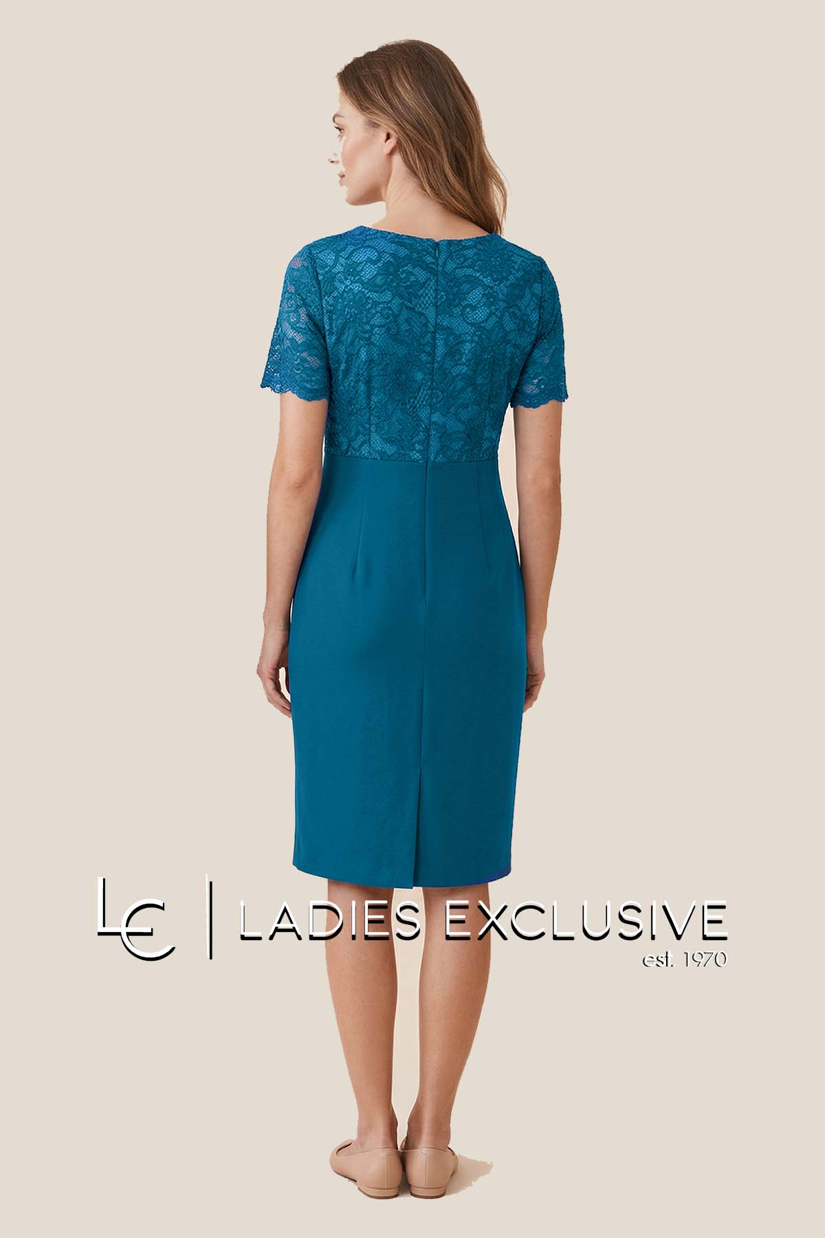 VIDAL Σετ 2 τεμαχίων που αποτελείται από μπολερό πετρόλ από δαντέλα και φόρεμα κοντομάνικο κρεπ με δαντέλα στο πάνω μέρος.