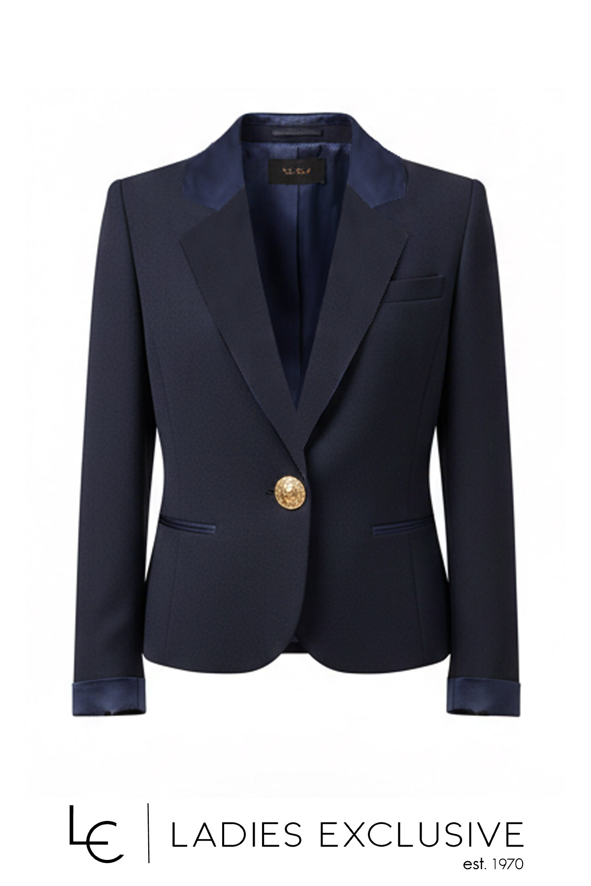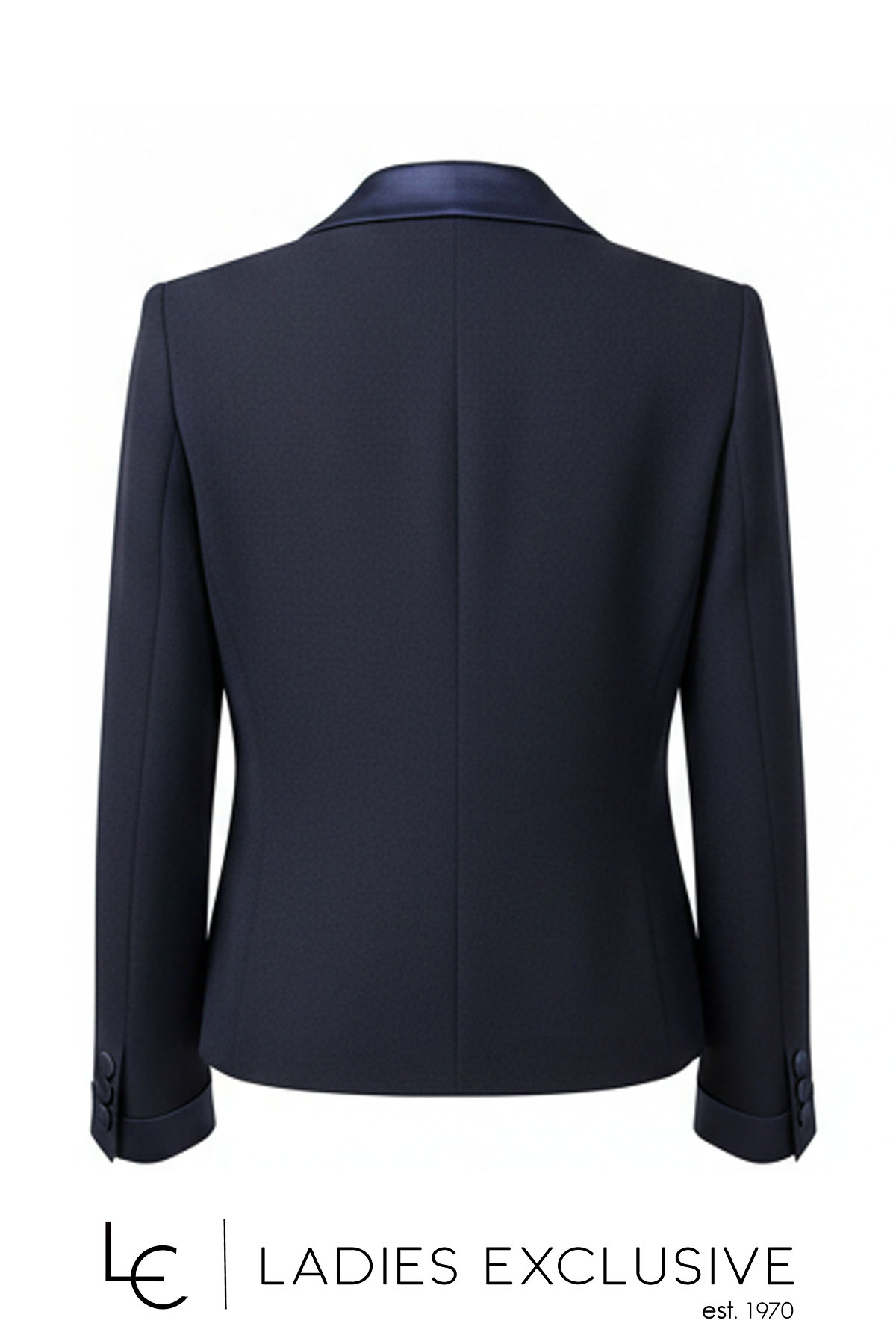 BELLA P. Μπολερό μπλε κρεπ με πέτο και σατέν λεπρομέρεια στον γιακά. Γίνεται σετ με το φόρεμα 21261.05157.0121.03.
