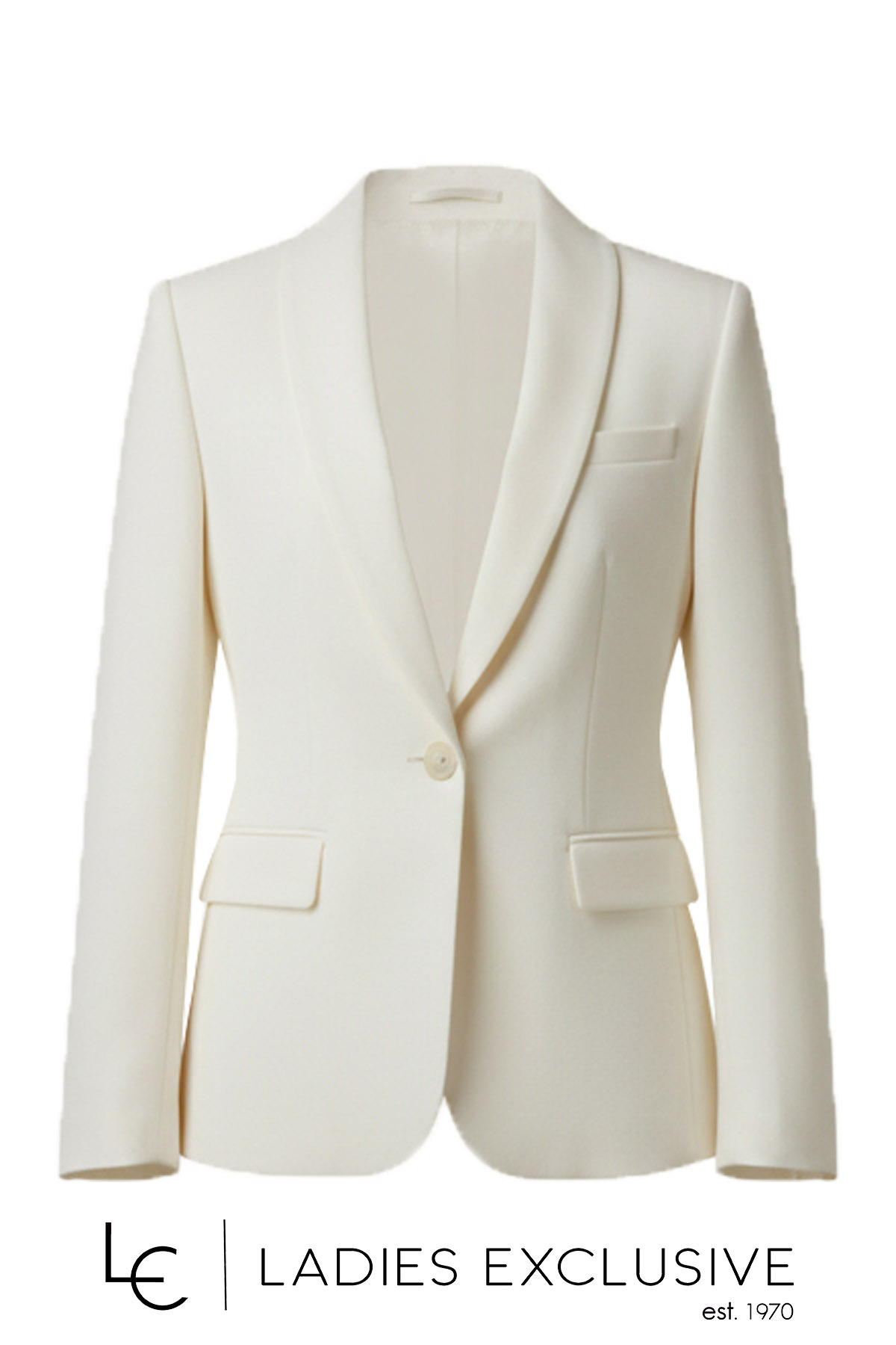 BELLA P. Σακάκι λευκό κρεπ με ένα κουμπί και τσέπες με καπάκια. Γίνεται σετ με το παντελόνι με κωδικό 21261.03100.0121.06.