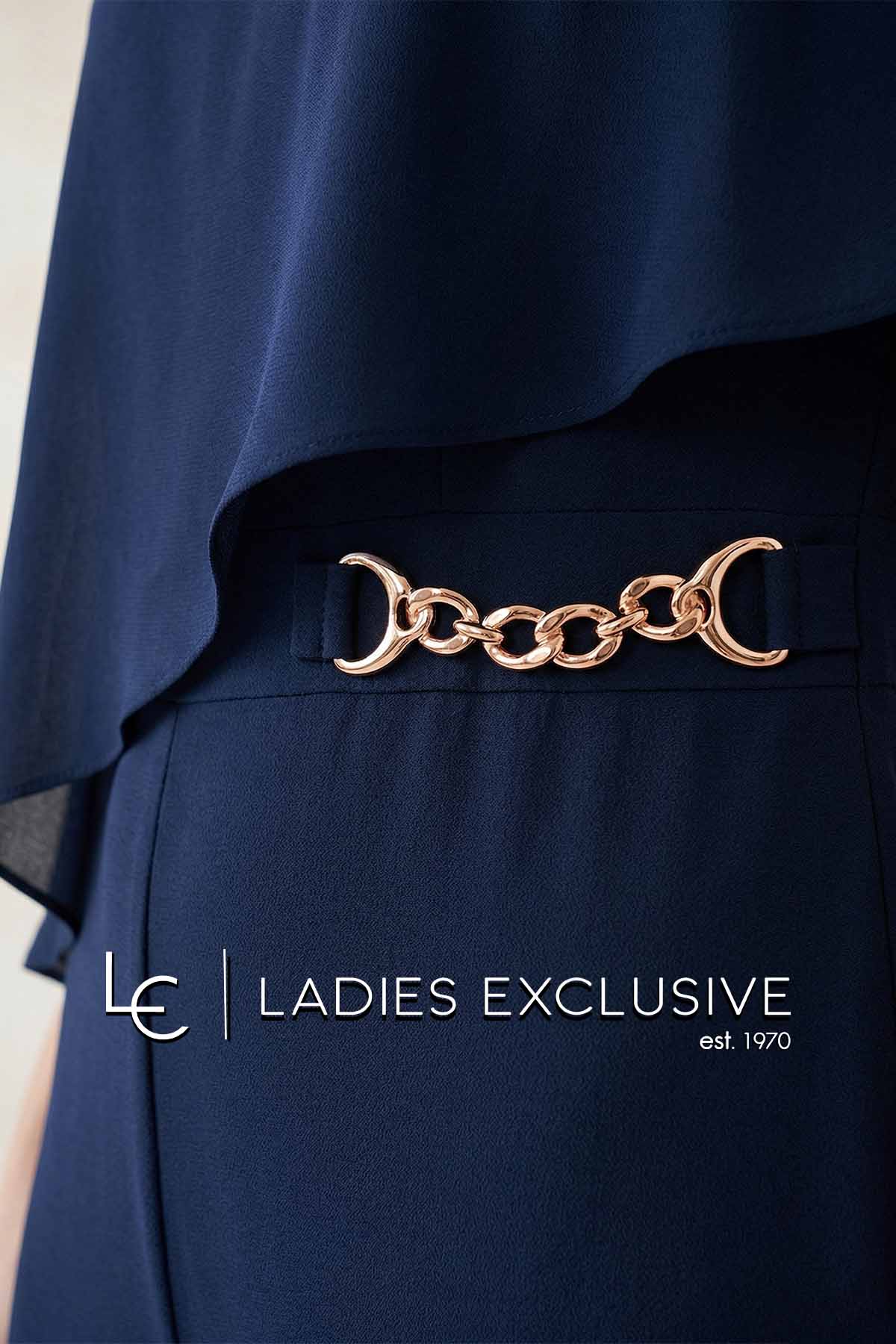 EFFECT Φόρμα μπλε ολόσωμη κρεπ αμάνικη, με ύφασμα που πέφτει ανάλαφρα στο μπροστινό μέρος σαν μπέρτα. Έχει επιπλέον ύφασμα για τοποθέτηση μανικιών.