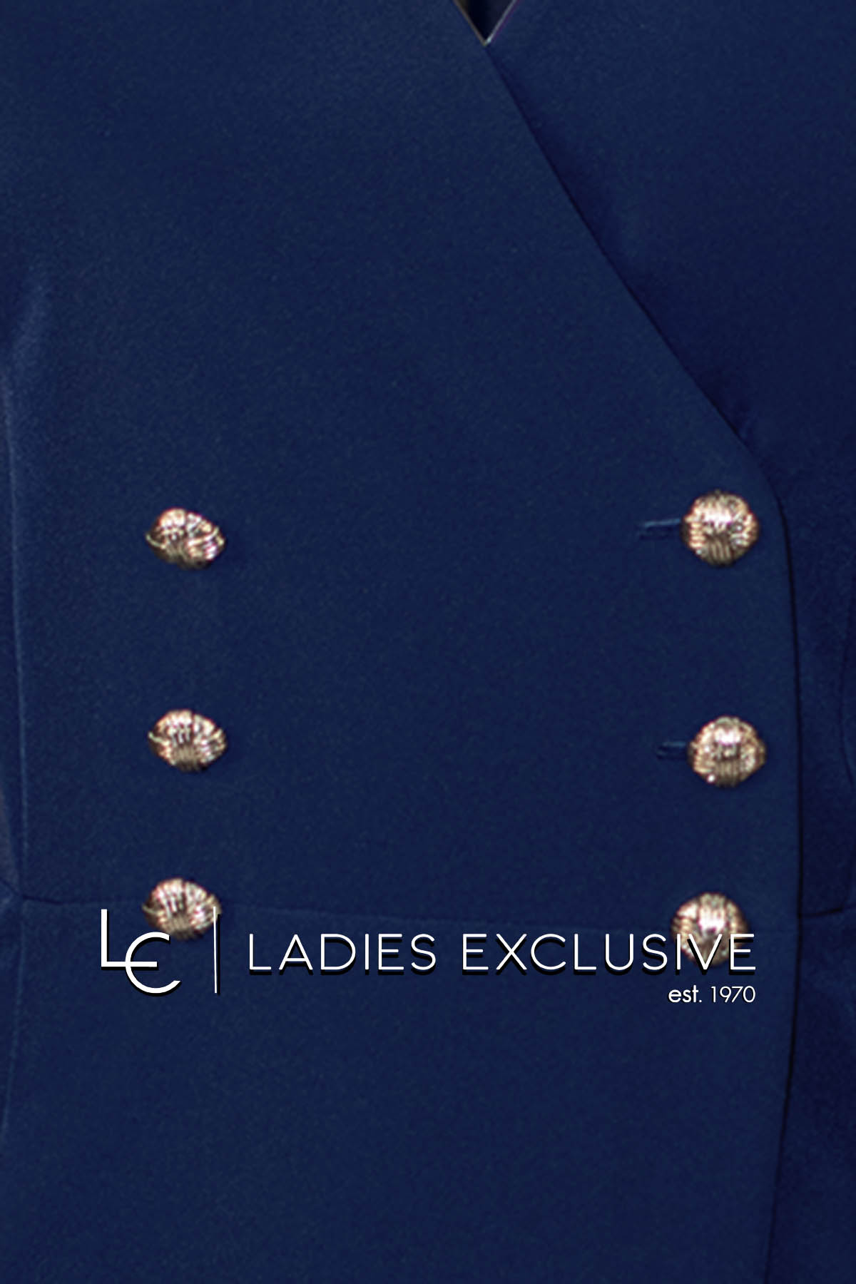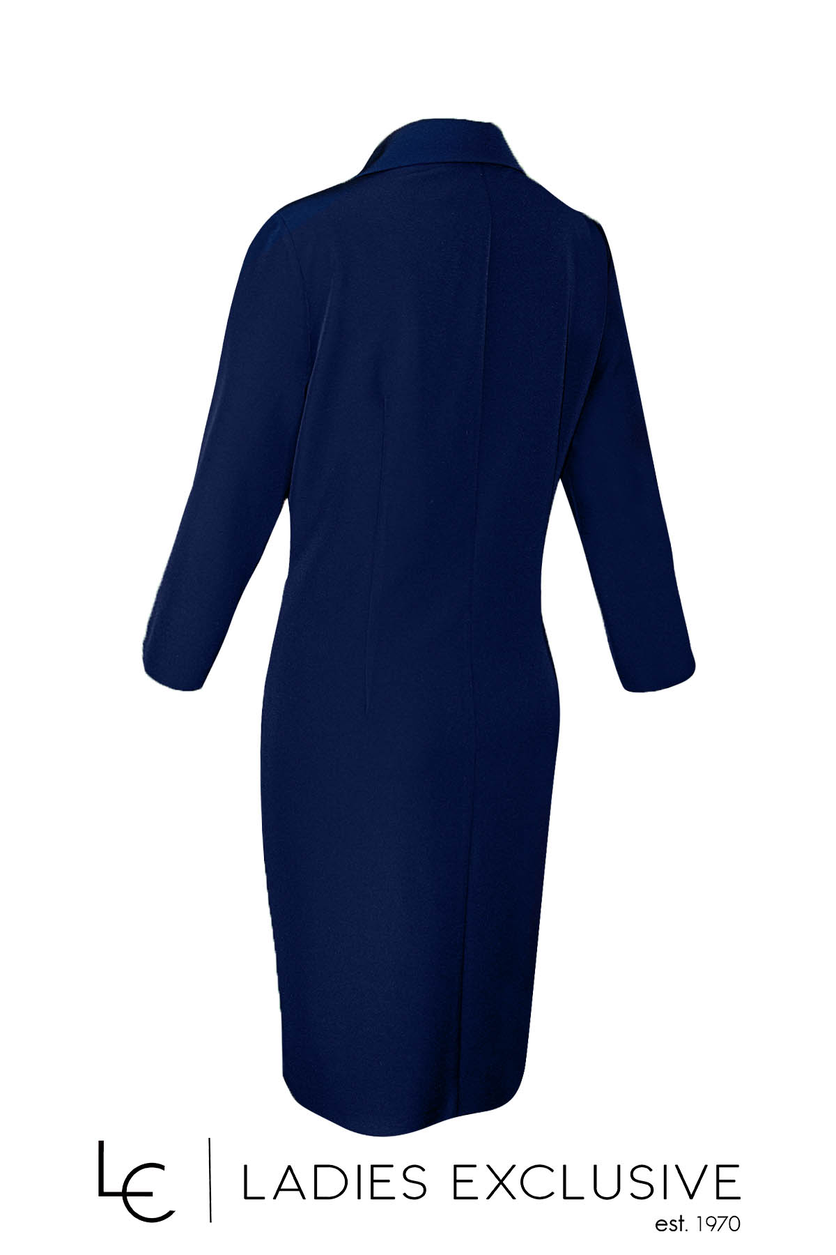 ESTEL Φόρεμα μπλε κρεπ κρουαζέ με πέτο γιακά και χρυσά κουμπιά.