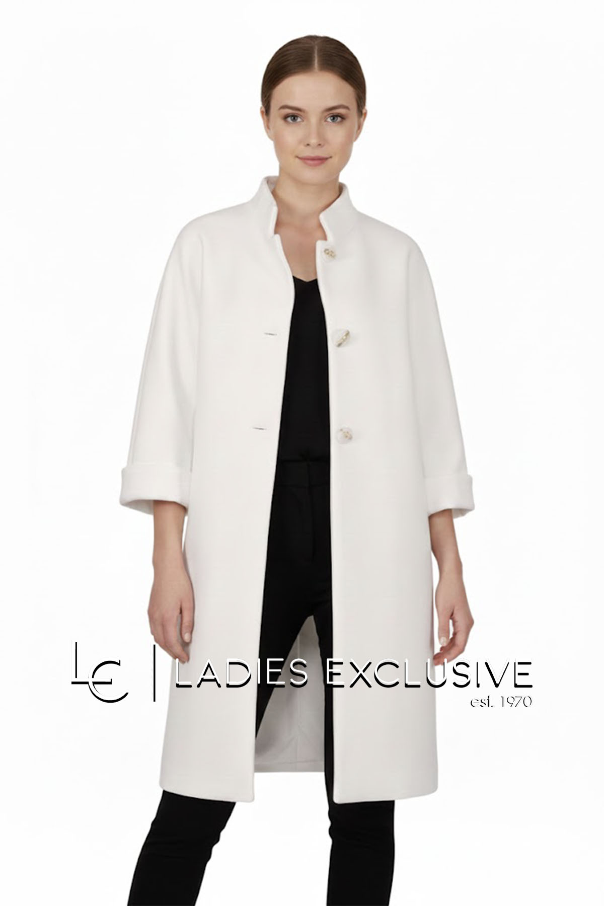 ESTEL Παλτό λευκό με μάο γιακά και ιδιαίτερα κουμπιά.