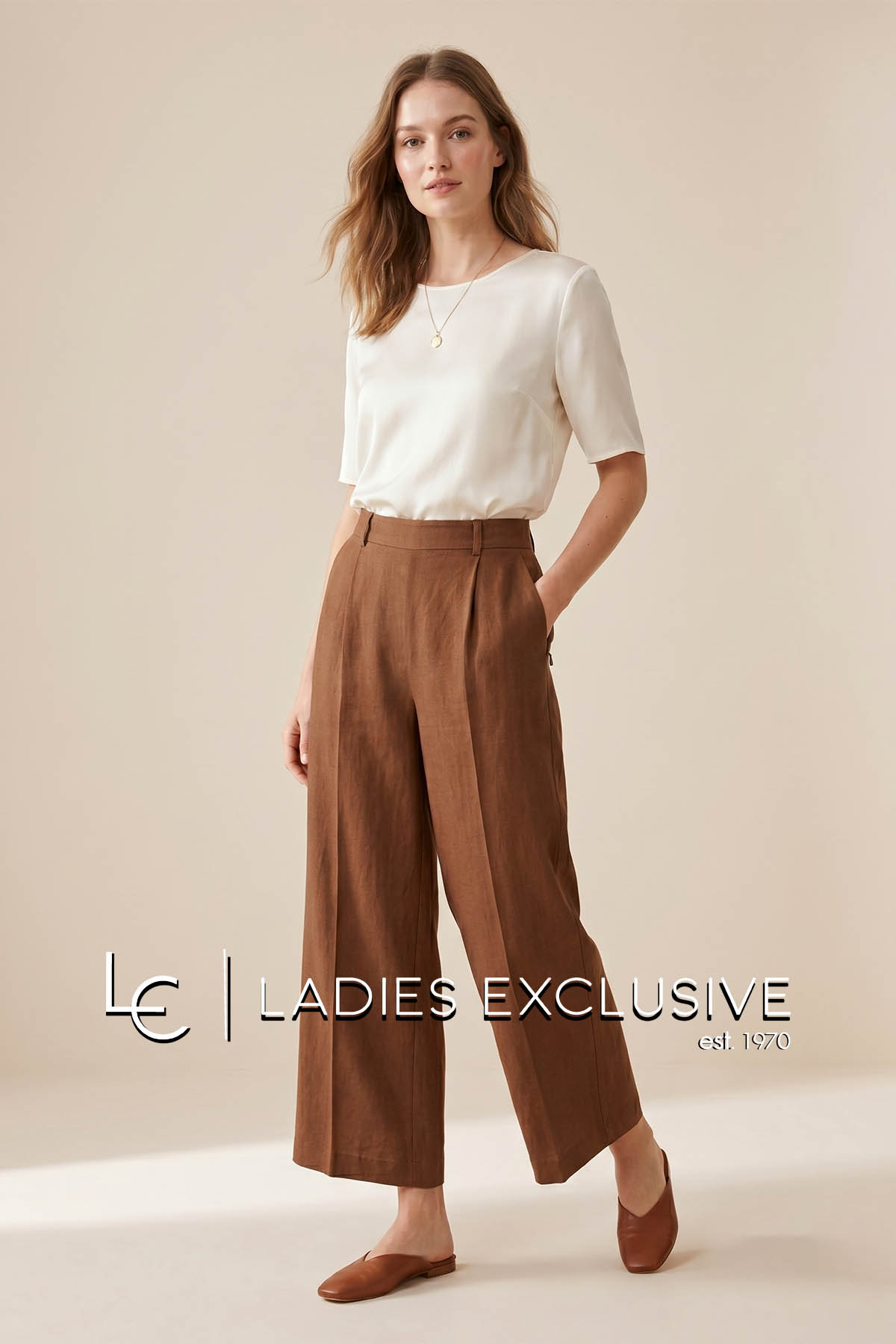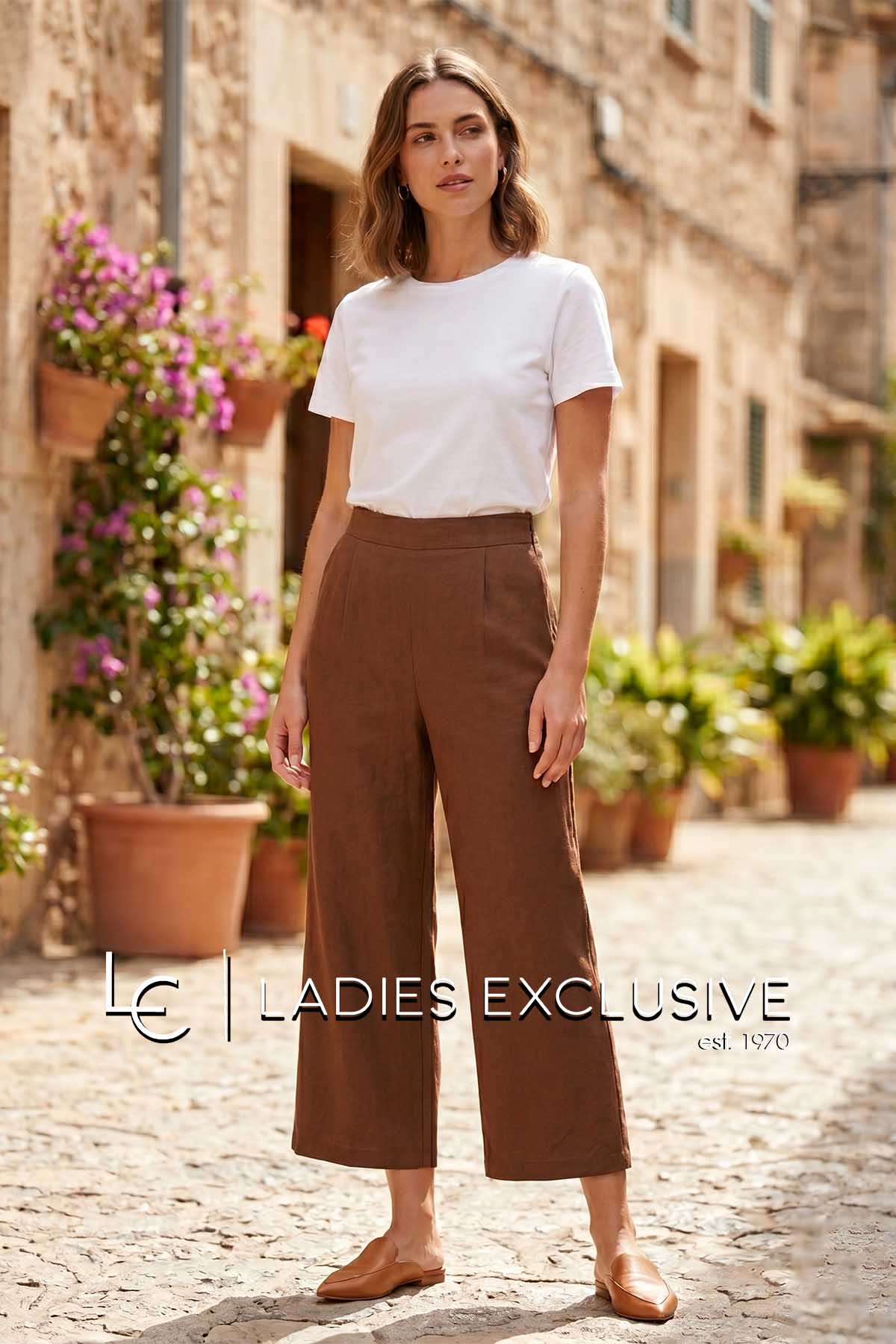 ESTEL Παντελόνα καφέ με λάστιχο στη μέση και πλαϊνές τσέπες.